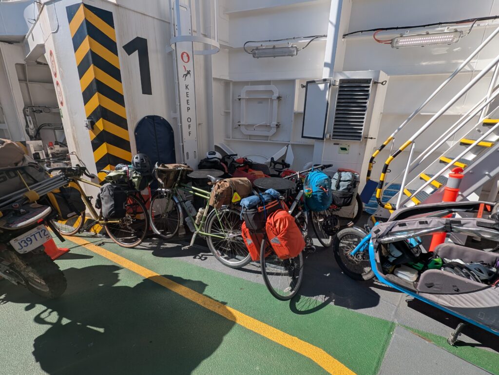 I rode from home to the ferry, about 54km distance, with a friend and her e-cargo bike and two small kids. The cargo bike doesn’t fit on or in either their car nor public transit options, so ride it was. It’s a big of a slog – across town, over a couple bridges, then across an expansive section of farmland to finally reach Tsawwassen ferry terminal.
