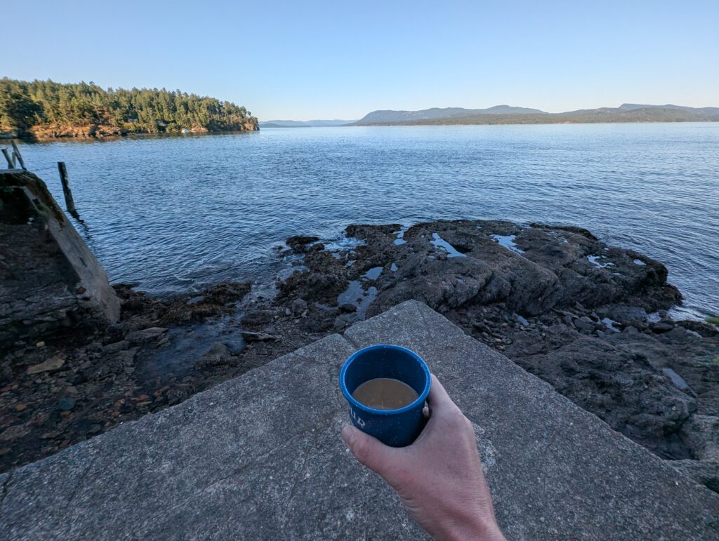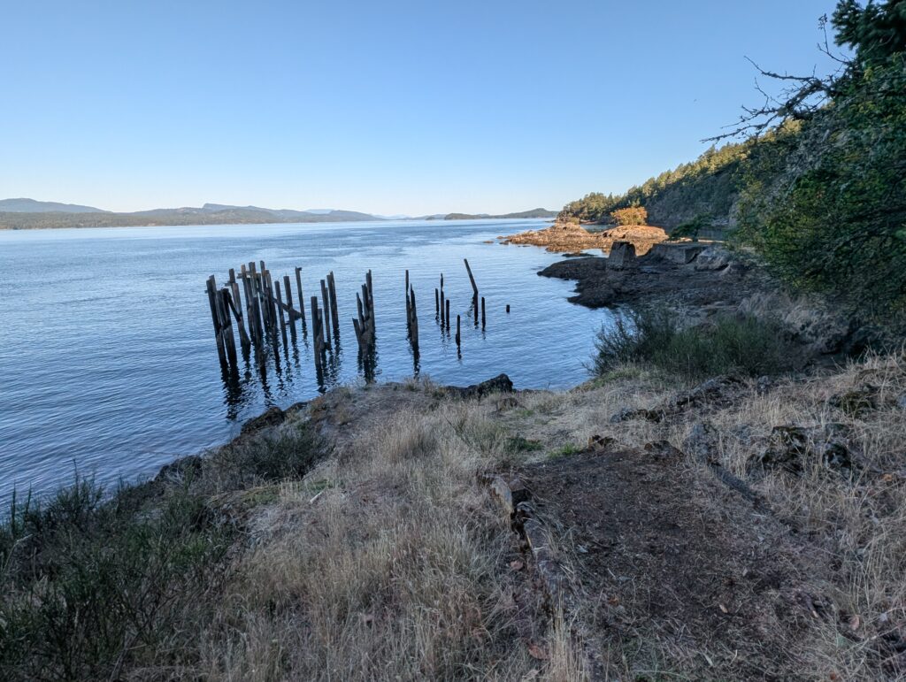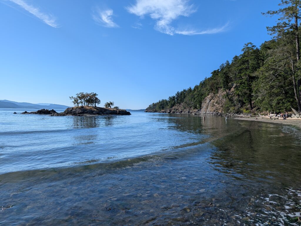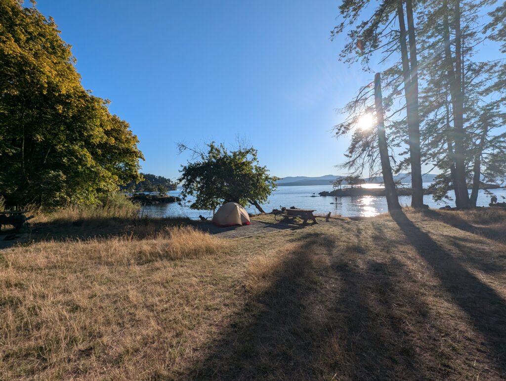 Booked in haste as soon as reservations opened this past spring, I had a site at Shingle Bay campground alongside a handful of friends for August 22 – 24. Shingle Bay is a secluded campground along a particularly beautiful bit of coastline, accessible only by foot or bike, and with a minimum of services: no water, just a single pit toilet.