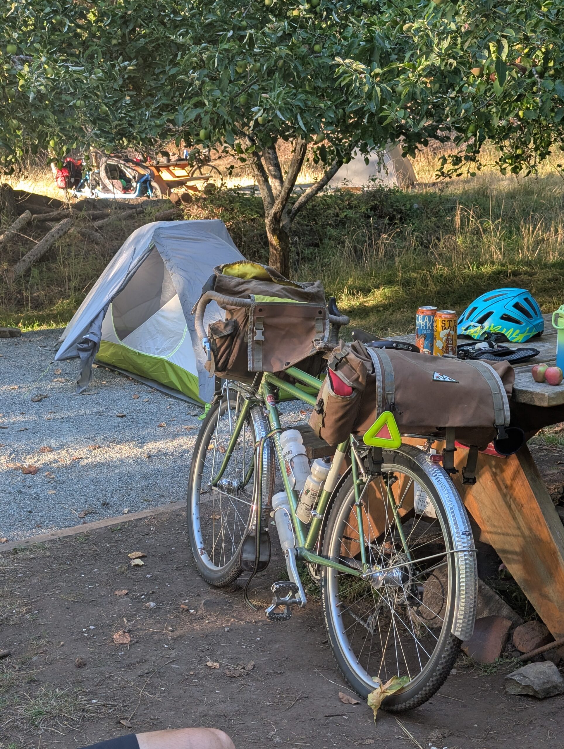 Once on Pender, the campsite is only 6km from the ferry, but this distance includes a few punchy climbing sections. I raced to the beer store first, then made my way to camp. After setting up my tent I realized my rear tire had gone flat; a slow leak on the inaugural ride on these tires!