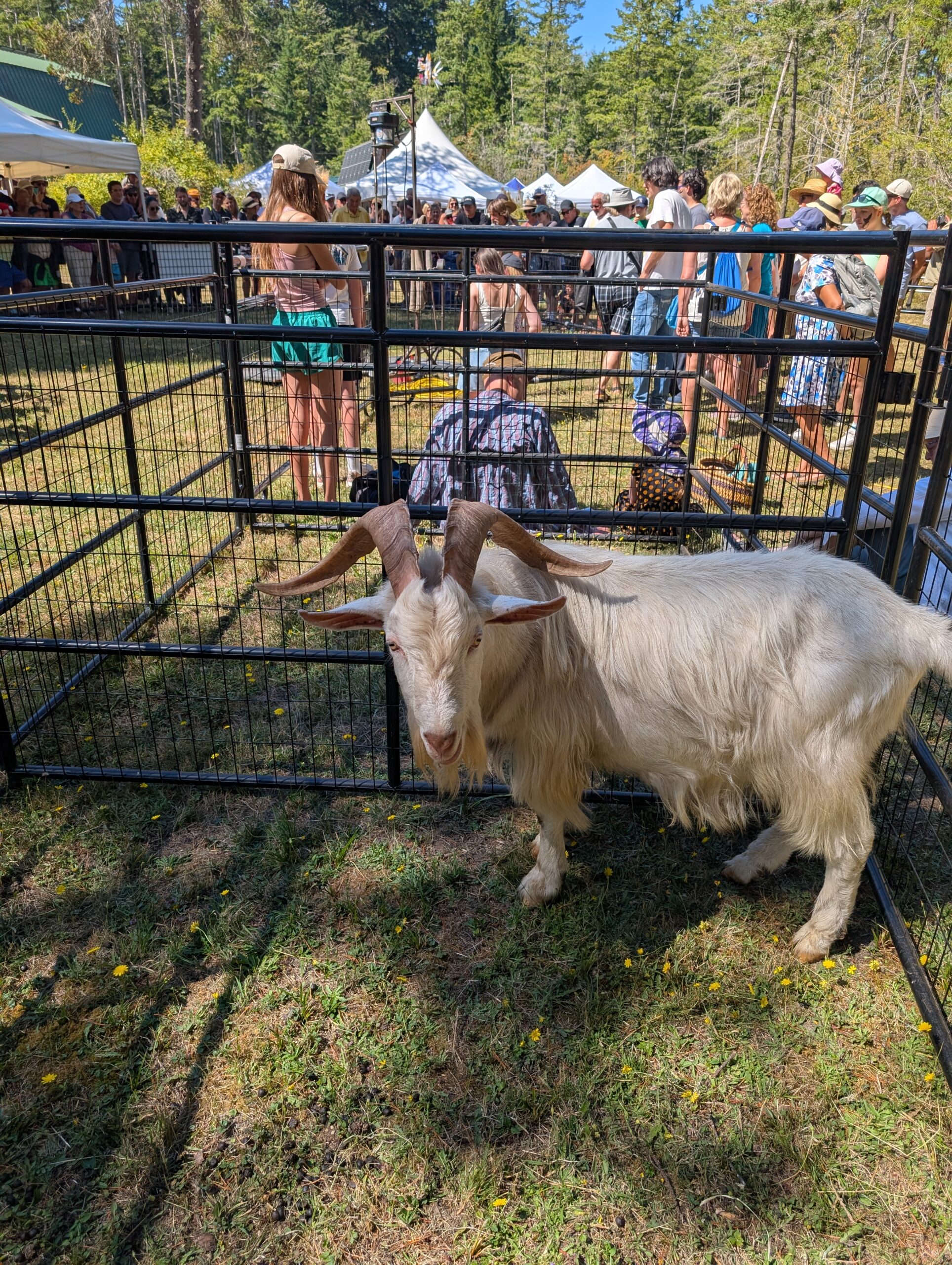 We lucked out that the annual Pender fair was happening on our only full day on the island, so once the morning rituals were complete, we headed into “town” for the festivities. The event started with a low budget but high enthusiasm parade, followed by fairgrounds full of display fruit and local interests of all sorts. I had a volunteer-grilled hamburger and spent some time in the beer garden, where beer from the nearest brewery was pouring – which was from Sidney, just on the other side of the ferry to Vancouver Island.