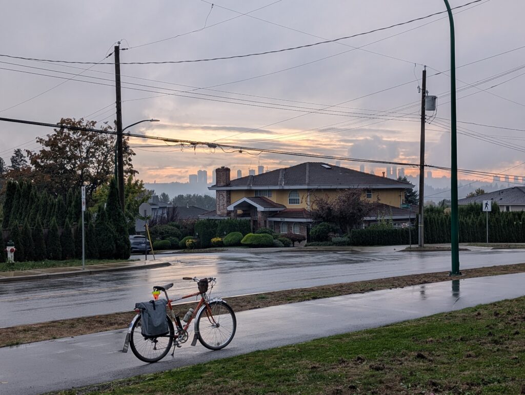 I thought I’d beat the weather, but I rode right into it – which provided some pretty dramatic skyline, at least.