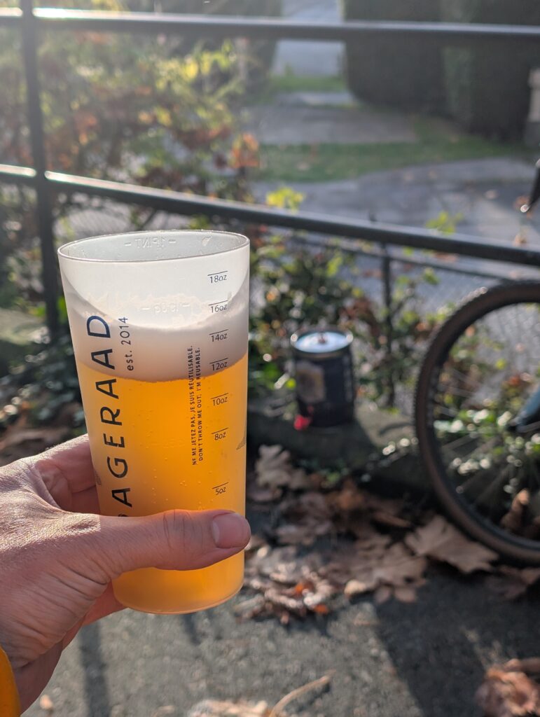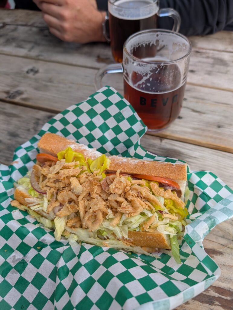 We stopped for sandwiches (and a Märzen) en route to retrieving our mini keg – successfully!