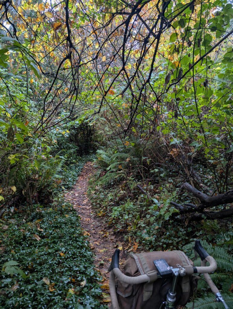 So a last-minute re-route onto the adjacent road was necessary. Soon enough it reconnected with the trail network, along a creek and then up into Byrne ravine.