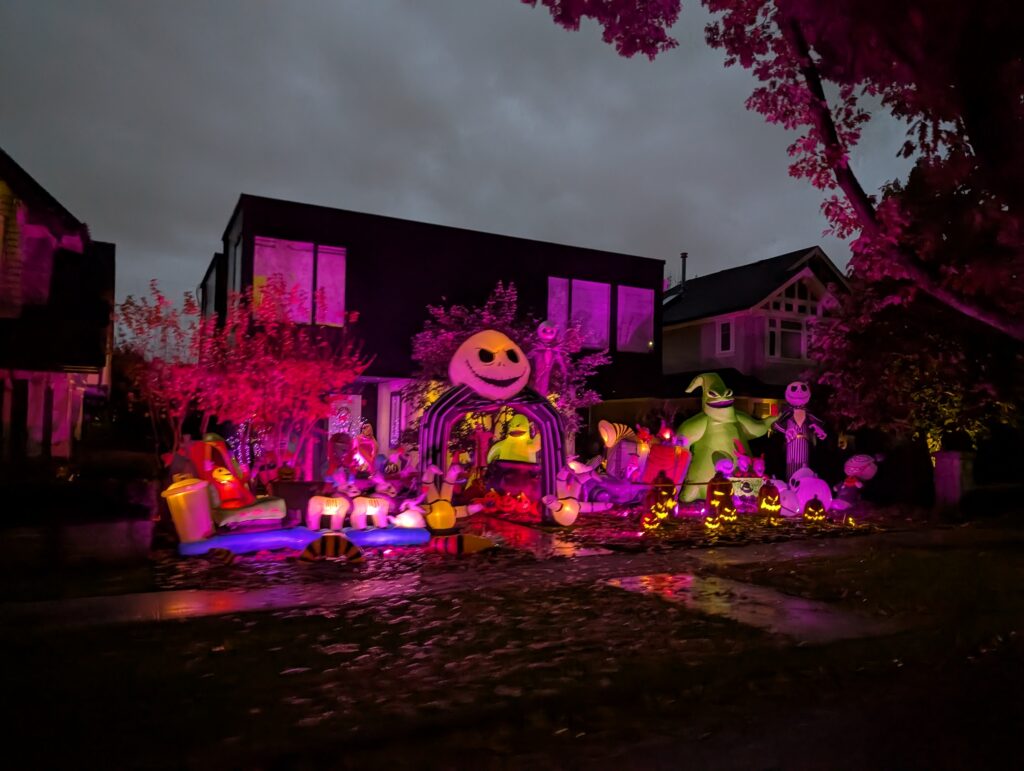 Being dark by the time I was passing through the North Burnaby neighbourhood towards the start/finish gate, I was able to enjoy some pretty epic Halloween displays: