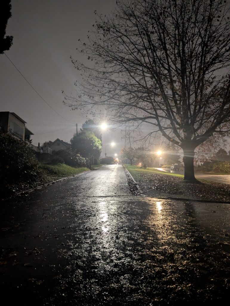 After everyone rolled out I stayed for a bit to see if the last big group would finish. It got dark, and with it, the rain got heavier. I texted one or two of the riders, and eventually I got back a message that everyone had kind of split up or peeled off. Unsure that anyone would come to the gate, and having lurked in the dark rain for an hour by myself at this point, I headed home.