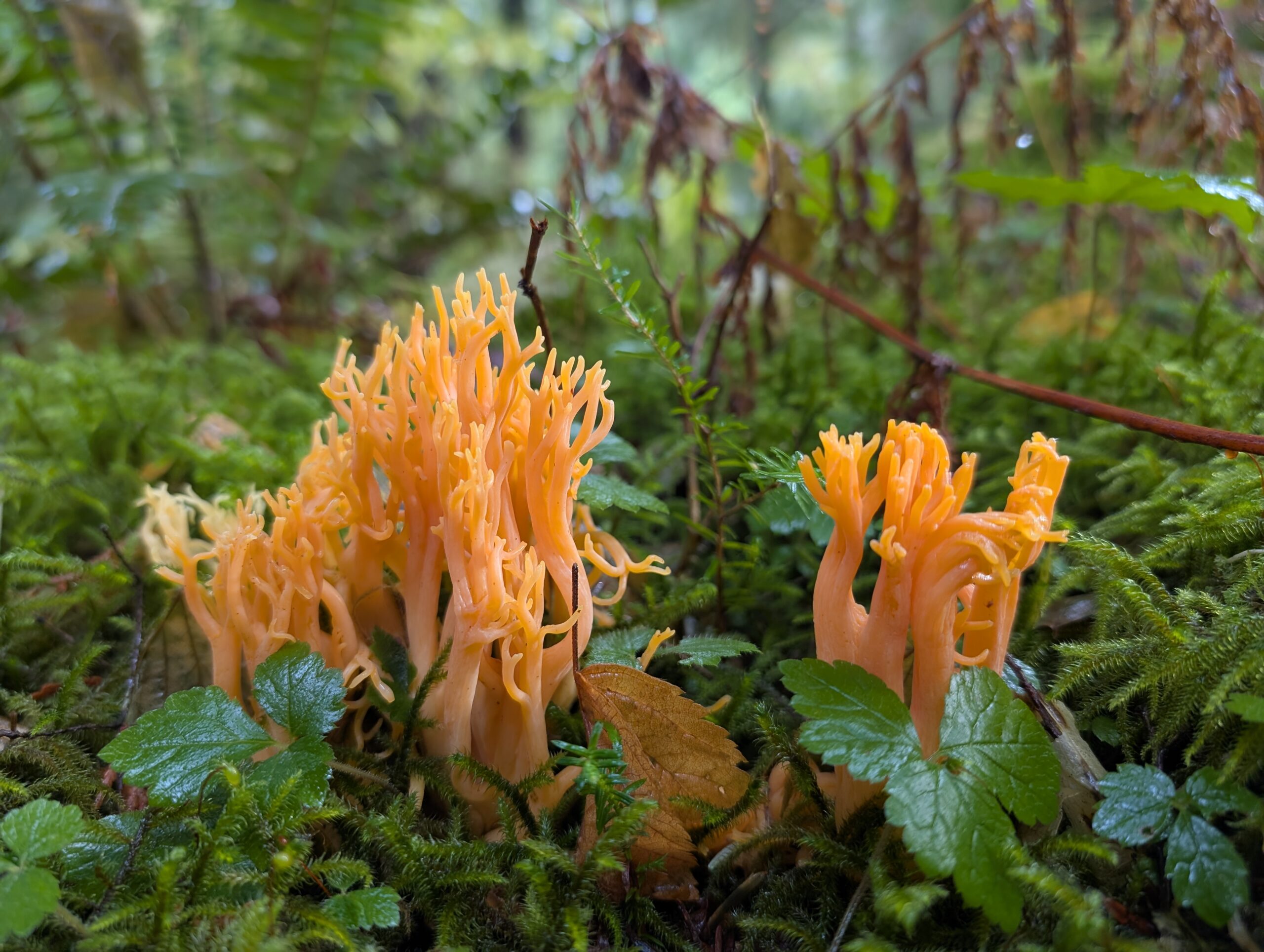 It took quite a lot of trudging around in the mossy understory to find one, but I did! See below, center. It was alone in this case.