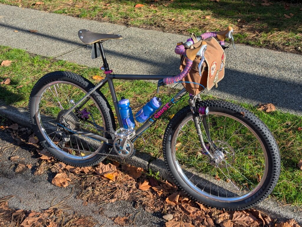 I felt like my quiver was really settled, and there was basically nothing on my bike wishlist anymore. But then a friend who’d just purchased a Crust Evasion frame set had some unexpected financial and health challenges come up that necessitated selling it, and I got to thinking. I had never considered an Evasion despite being long familiar with the bike, but the more I considered it, the more I realized how well-suited it was to my type of riding: a little bit of everything from pavement to intermediate MTB trails. Disc brakes are something I’ve denied myself on all but my dedicated MTB, which is a bit silly.