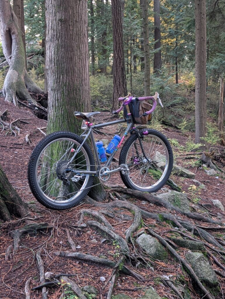 This inaugural ride was about 36 km and a good test – mostly paved, but there were some trail connections that were at or beyond the limit of what I could ride on my Bombadil, and the Evasion felt great in these spots. The WTB Rangers are remarkably quick on pavement given their size and knobby profile, though obviously they’re not exactly fast. As long as I’m not trying to keep up with speedy friends, it’s fast enough for me.