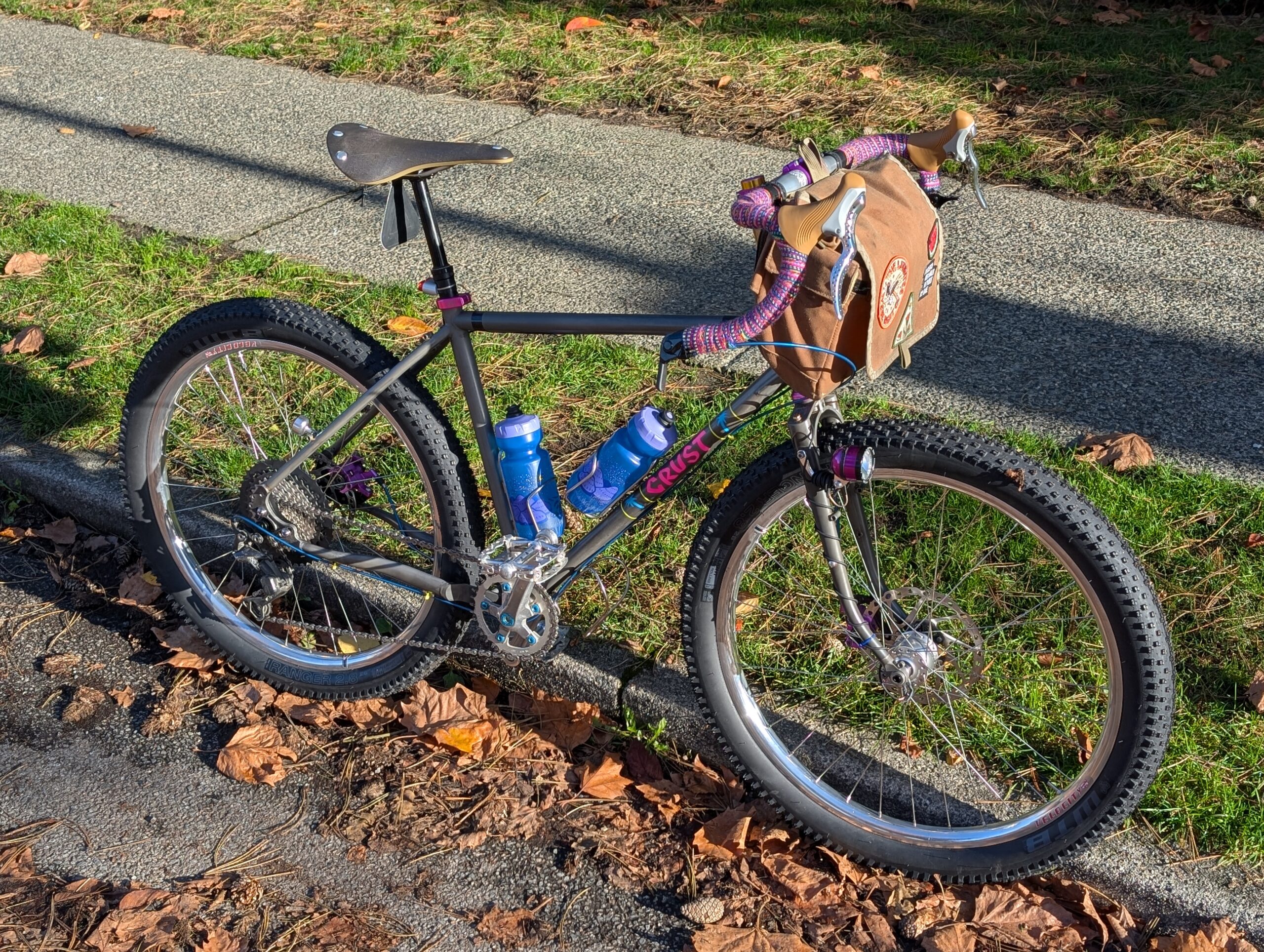 I felt like my quiver was really settled, and there was basically nothing on my bike wishlist anymore. But then a friend who’d just purchased a Crust Evasion frame set had some unexpected financial and health challenges come up that necessitated selling it, and I got to thinking. I had never considered an Evasion despite being long familiar with the bike, but the more I considered it, the more I realized how well-suited it was to my type of riding: a little bit of everything from pavement to intermediate MTB trails. Disc brakes are something I’ve denied myself on all but my dedicated MTB, which is a bit silly.