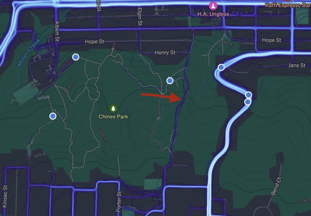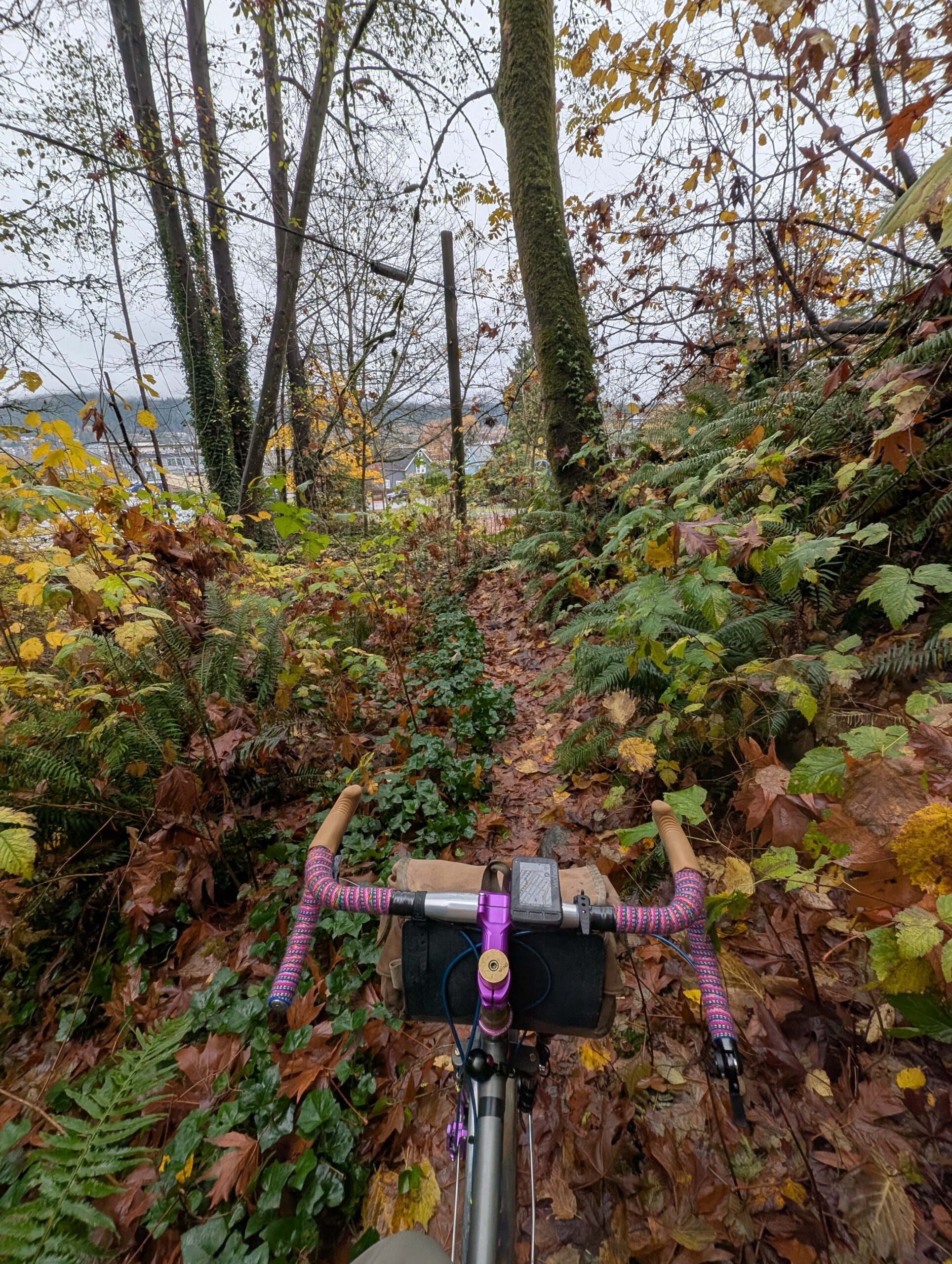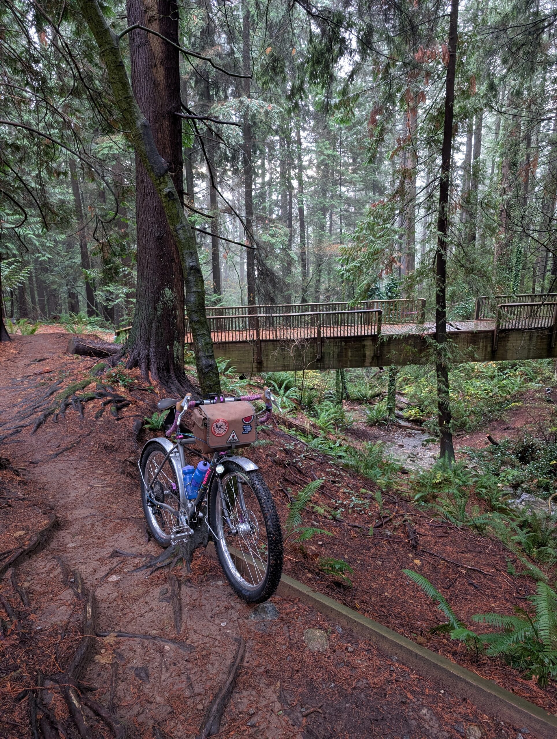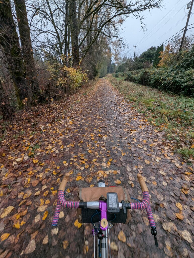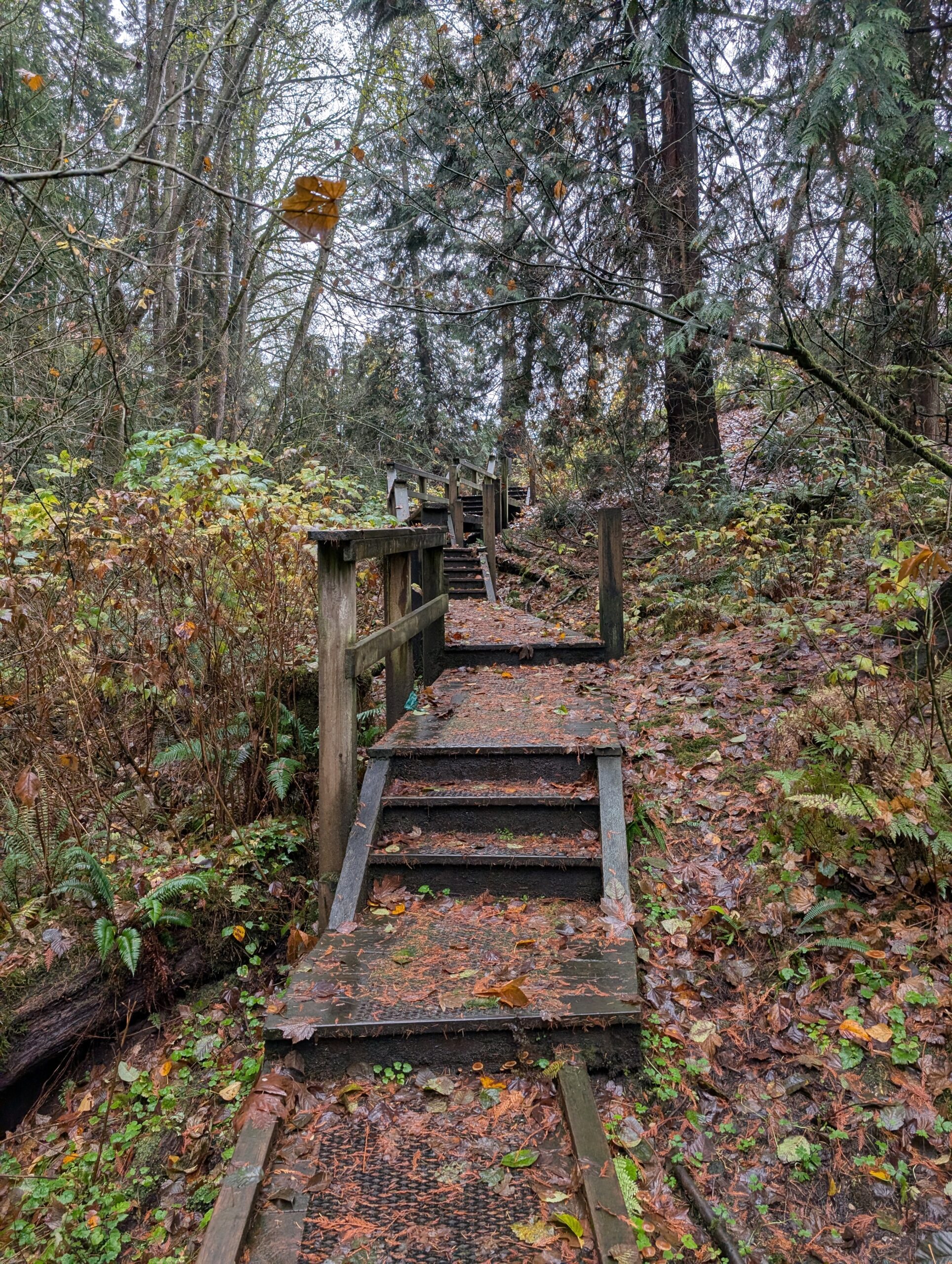 The ride out was pleasant and not too noteworthy, mostly consisting of a mix of gravel paths and quiet streets. I routed us through a couple parks which added some stairs and very slippery wooden structures.