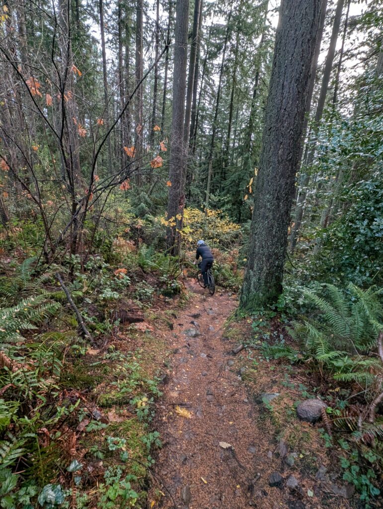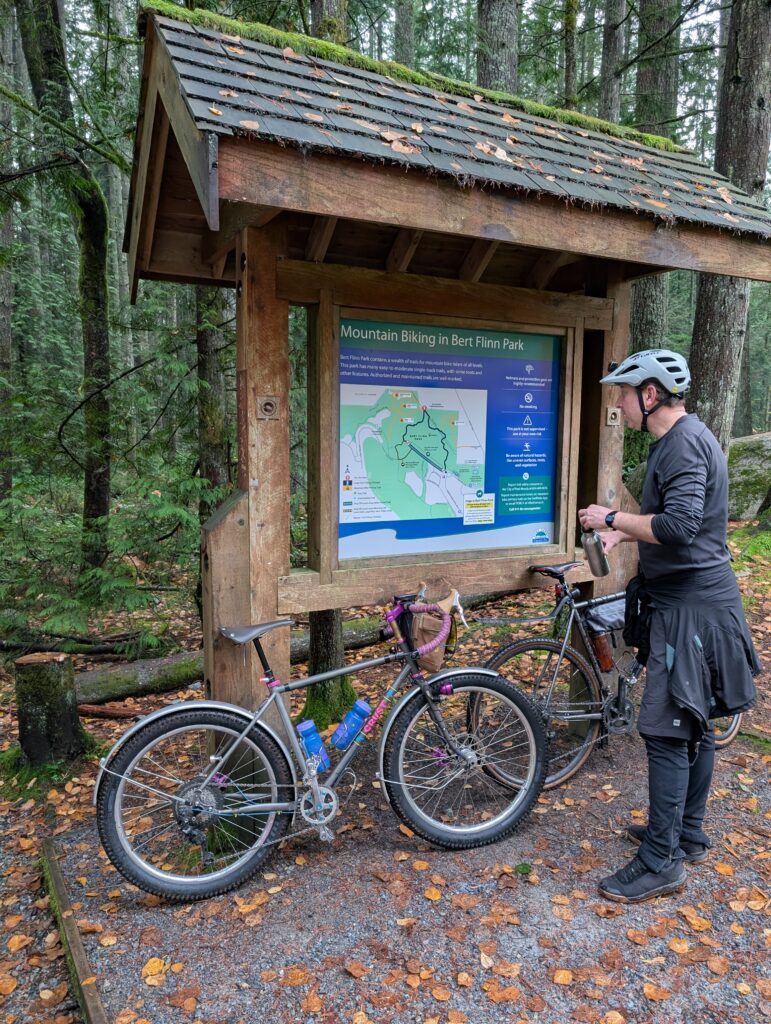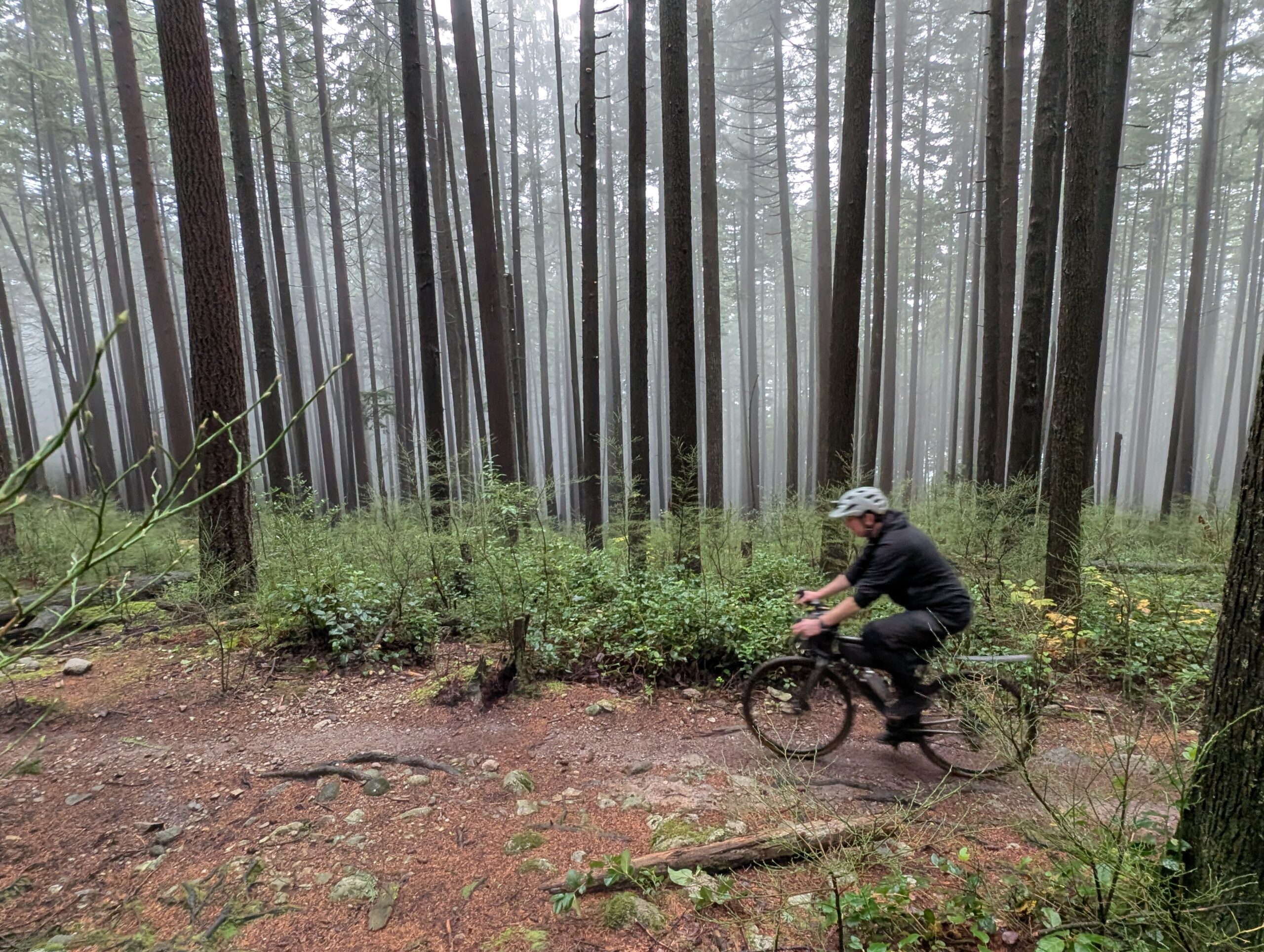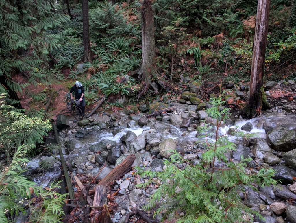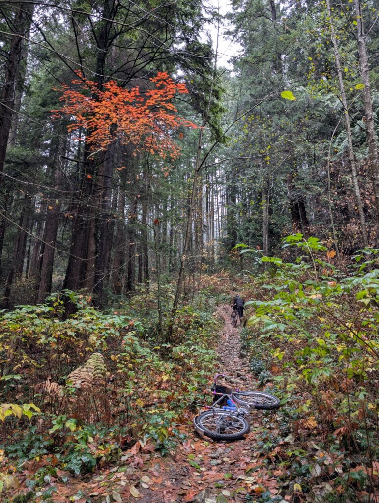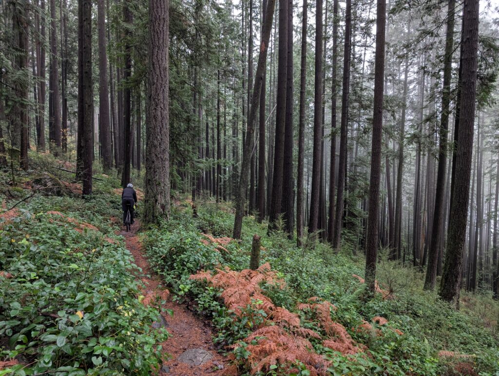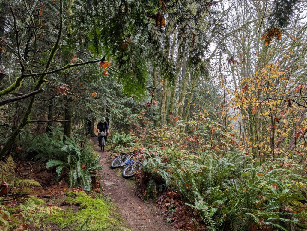 Some sections were pleasant while others were less so, but it was almost exclusively a walk up – which was totally fine by us. It eventually levelled off, and we were in the mountain bike trail network. Unlike the fabled north shore, the trails here are decidedly more XC style and mostly green and blue difficulty – lending themselves to gravel type bikes, as long as you don’t mind some under-biking.