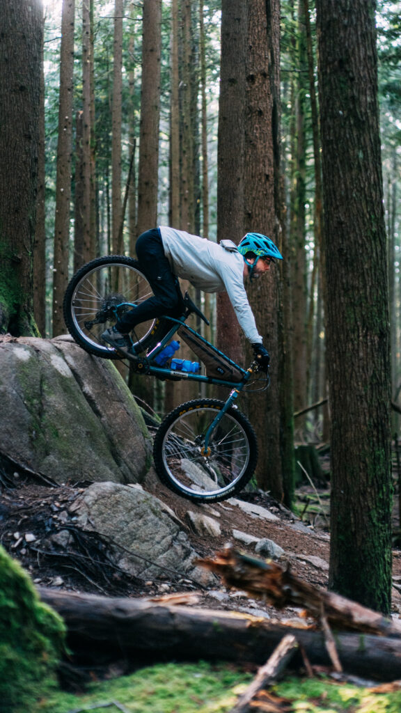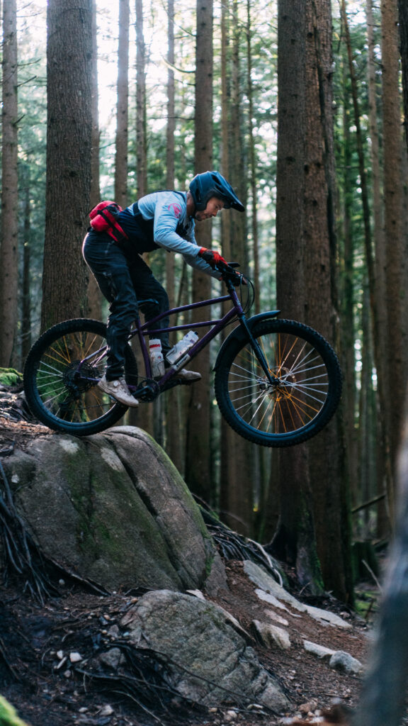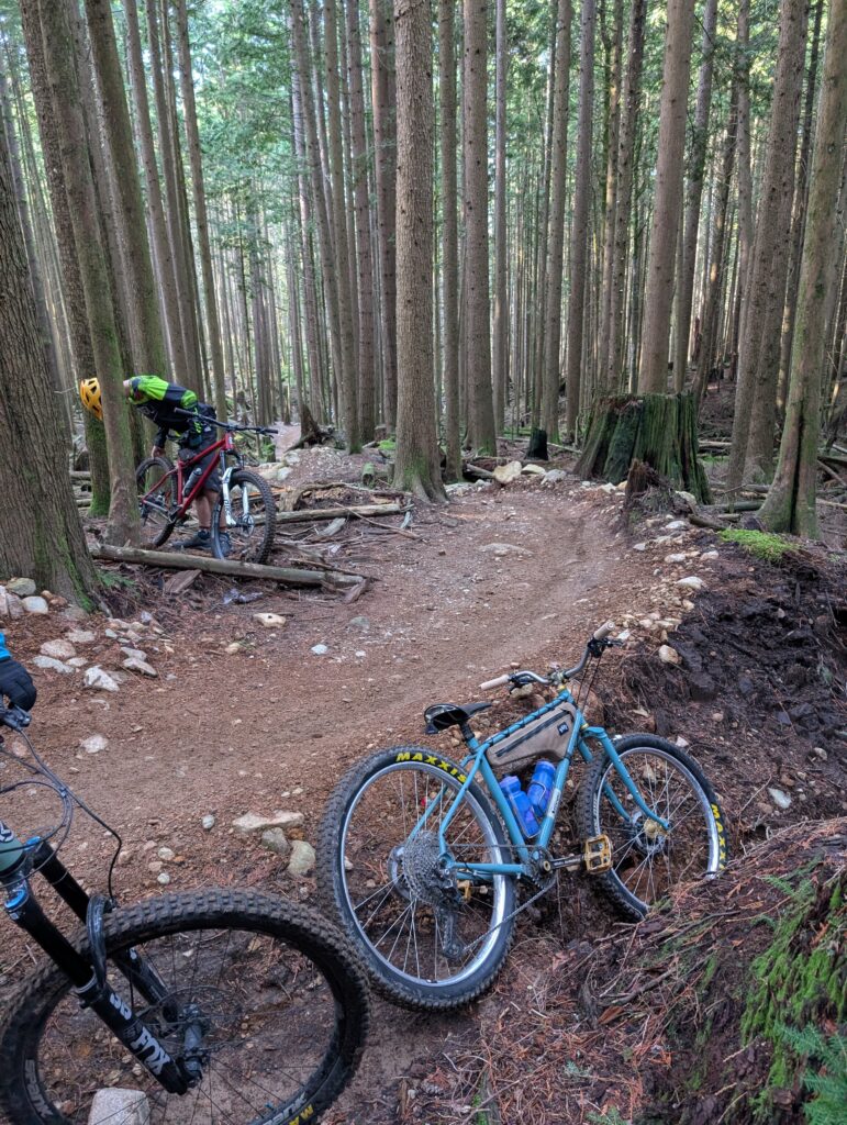 As I was pedalling over to the meet spot from my car I saw a familiar purple Stooge Dirtbomb – Jeff Kendall-Weed’s! I have watched all his videos with the Stooge and if you haven’t, I would highly recommend it. He has single handedly raised the bar of what can be done on a rigid MTB. He ended up being the only other rigid bike, but still probably the fastest rider of the group.