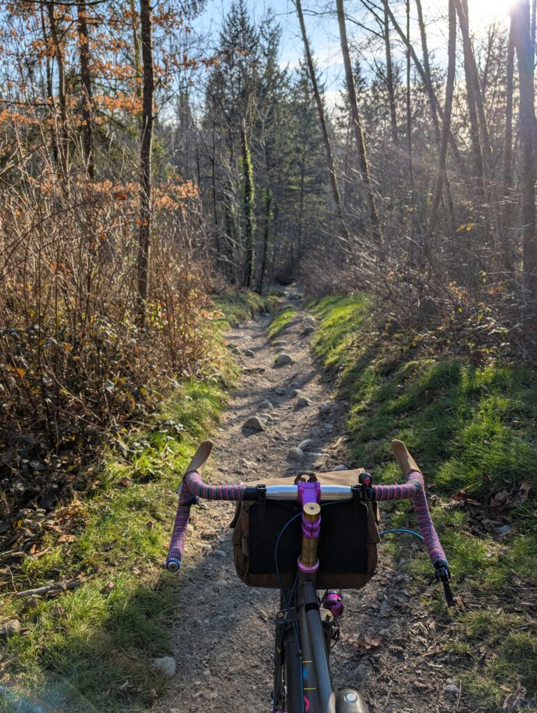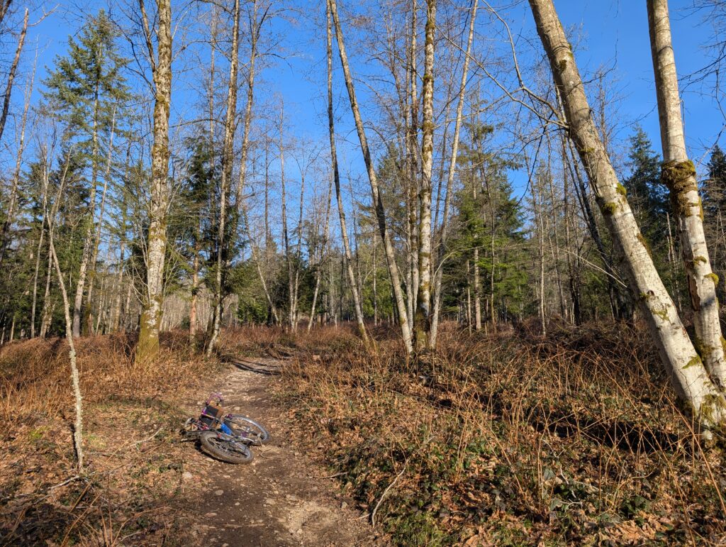 While I wasn’t interested in actually purchasing the plots, I did want to check them out, which made for a perfect mission for the weekend to get me out on the bike with purpose. It was about 15 km away from my home and the final 700m was hiking trail. I took the Evasion because there were also some easier MTB trails along the way I could take advantage of – and staying off the pavement had extra appeal today, as there was risk of black ice.