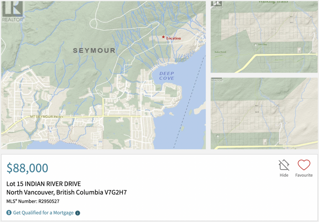 A few days ago I was habitually checking vacant lot sales on realtor dot com, not because I’m in the market but because I just enjoy daydreaming about what I’d do with them. I saw two 90x120ft lots on the east side of Seymour, just north of Indian River Dr – in the middle of the bush. They are trail-access and there’s no chance that the city would allow structures to be built (I’m guessing) but oddly they are zoned for it. They were only $88,000 each, which, given that you can’t really do much with it is perhaps still a lot, but compared to the literal millions that a liveable home costs, it still came as a surprise.