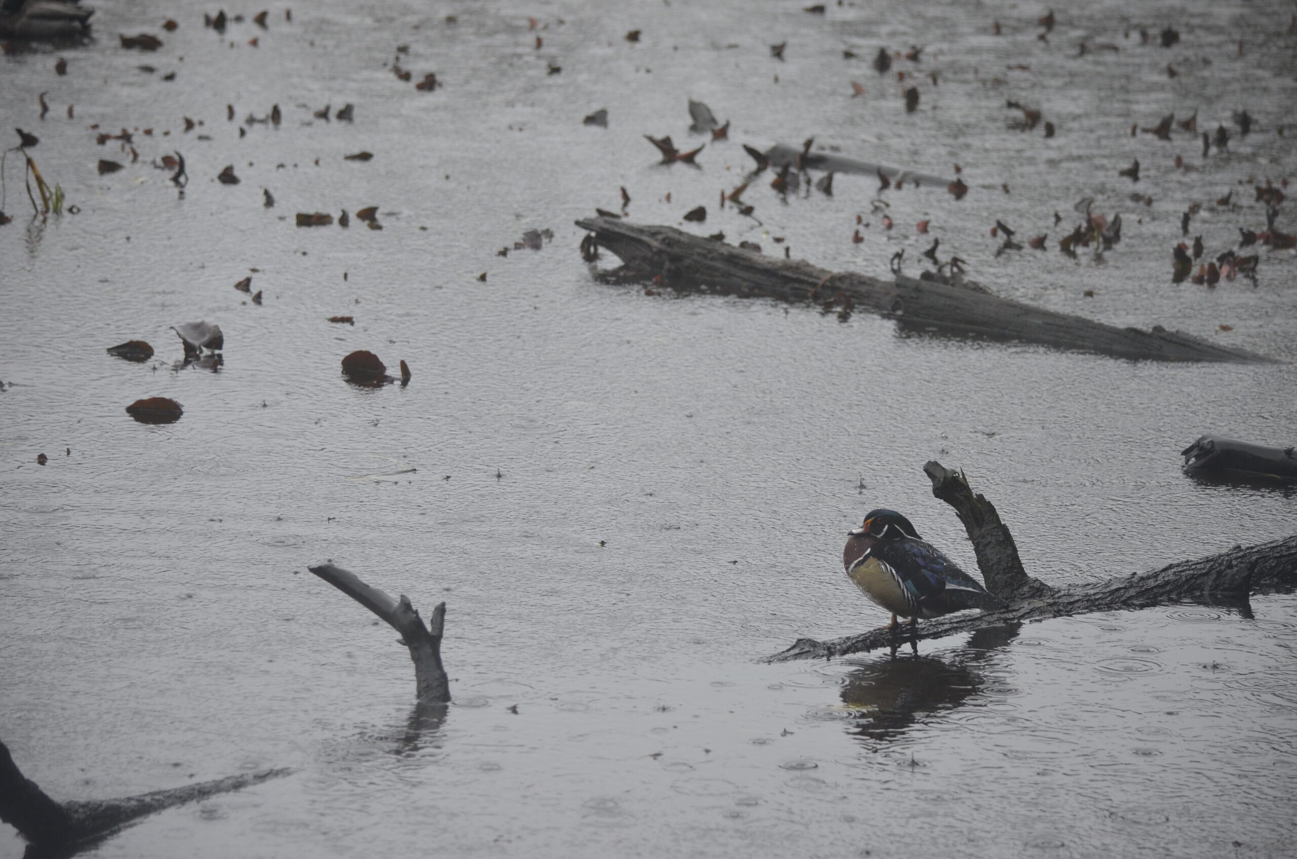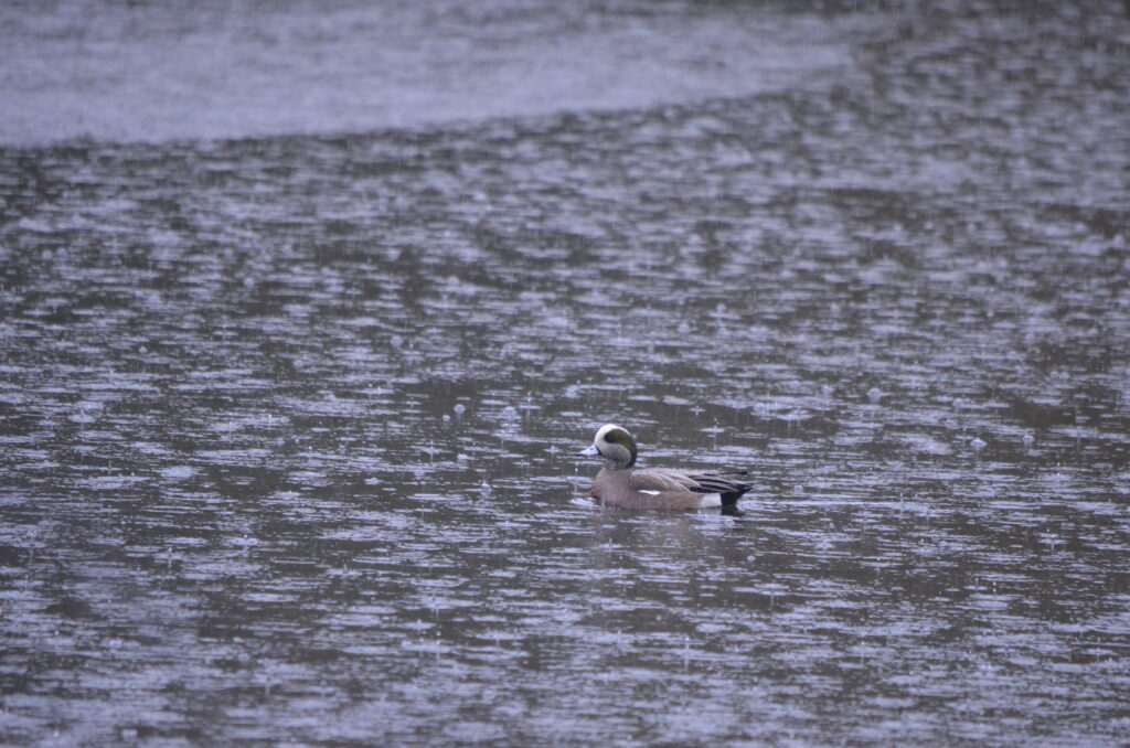 Today, Saturday, was forecasted to be what we call an atmospheric river these days. Tomorrow is looking more or less dry. Yet I don’t sit still very well, so I put on the poncho and headed out with my camera to try to get some more bird photos. The photo below is from my phone though, overlooking Beaver Lake in Stanley Park. I did get some “real” photos here too of a snoozing wood duck among the many mallards.