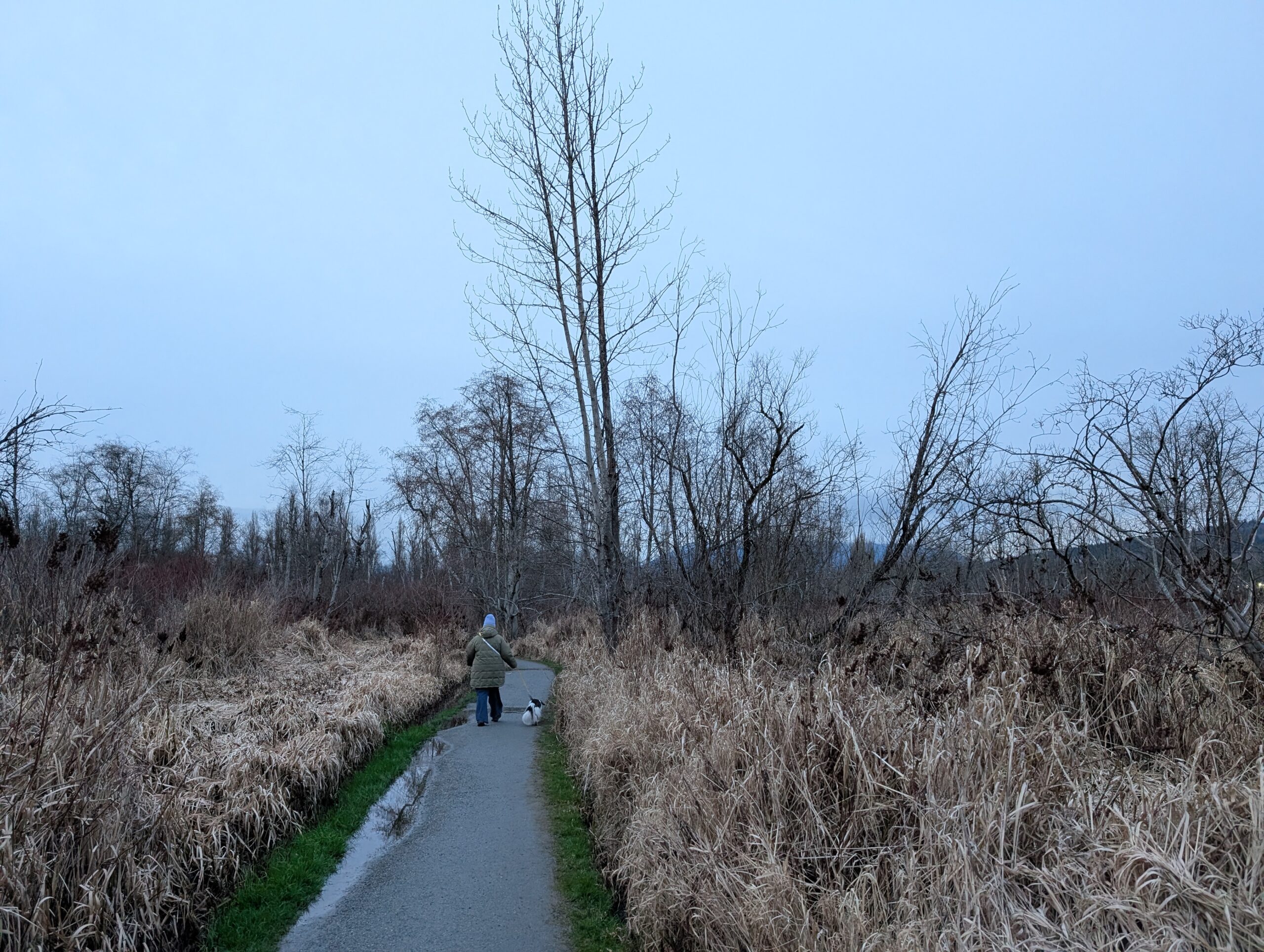 No photos of particular interest for the 25 kms from here to home, but once home I made a quick change to drive over to Burnaby Lake for a dog walk outing with my Mrs. Managed to fit in a ~60 min walk before it got too dark; an action-packed day for me.