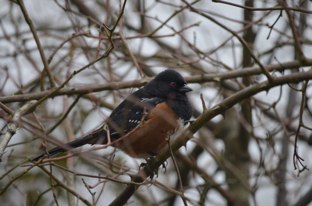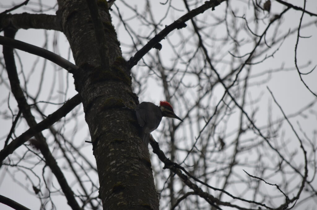 I mostly saw pretty ordinary birds, as expected. Lots of black-capped chickadees and spotted Towhees, as well as song sparrows. A couple eagles, and then the one bit of proper excitement was this pileated woodpecker which I heard at first, waited a few minutes, and then it swooped in and landed right by where I was standing. It then moved over to another dead tree even closer to me. They’re pretty big! Anyway, I guess I’m a birder now. I would have rather gone on a bike ride, but this was good too.