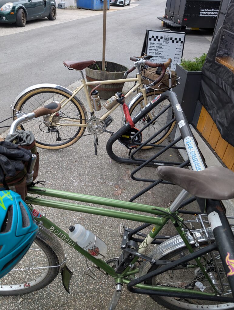 After that I rode through a park and some neighbourhood streets to arrive at Dageraad brewing for a burger and a beer. Then I headed for the north slope of Burnaby Mountain to ride up Velodrome trail and look at the topology uphill.