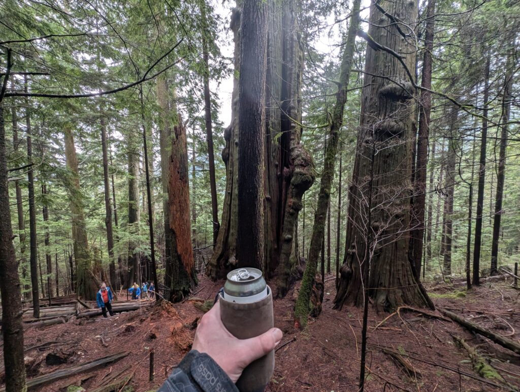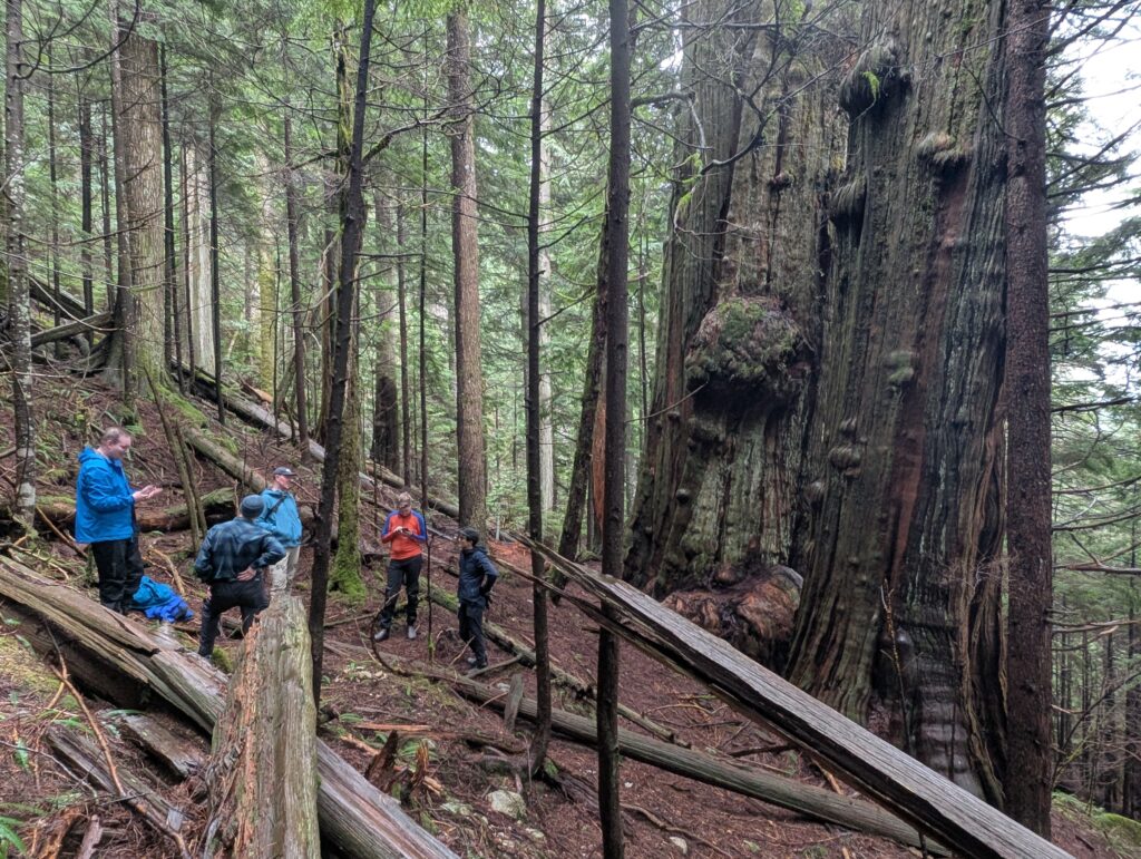 About half the crew joined on the old growth loop I had planned, which was essentially the Spur 4 loop I usually do with a couple short hike-in’s to see specific trees. First up were a pair of huge red cedars, a 15 minute hike up a semi-steep trail. We stashed the bikes in the trees near the start of the hike.