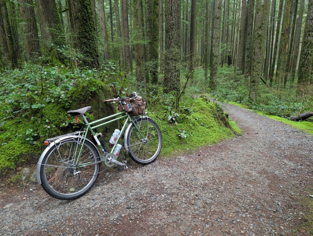 Tay and I split off near the end to check out some old stumps, which were neat but not on par with the trees above in terms of interest. Here’s the Bombadil, which has seen about 50% of my 2026 mileage so far (750 of 1500km, roughly). It’s pretty heavy but doesn’t feel like it when you’re riding; it’s a great all-rounder. I’ve been commuting on it, and while the Hillborne’s been offline it’s actually been my most road-friendly bike, funny enough.