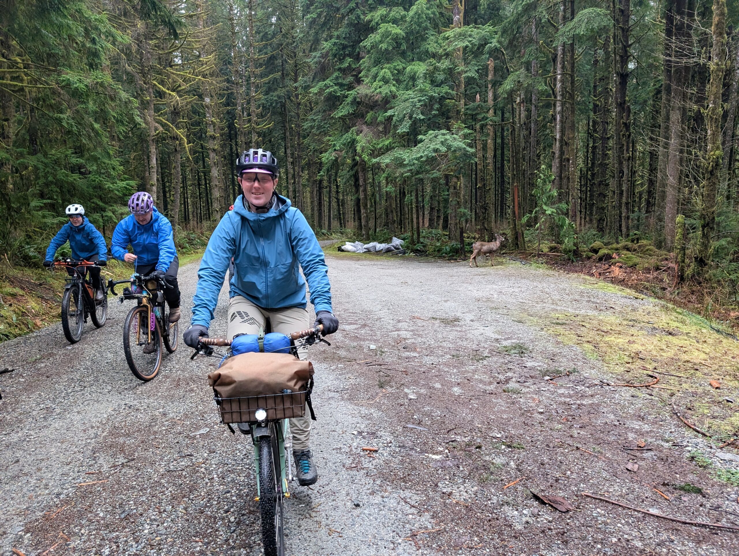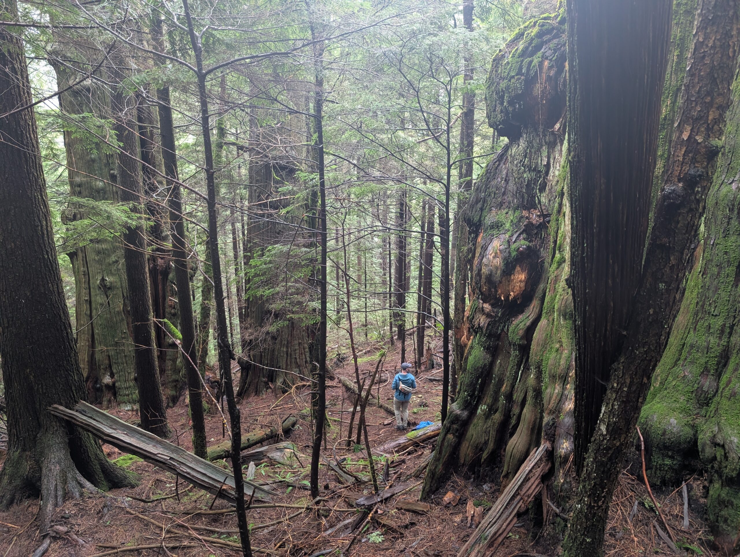 About half the crew joined on the old growth loop I had planned, which was essentially the Spur 4 loop I usually do with a couple short hike-in’s to see specific trees. First up were a pair of huge red cedars, a 15 minute hike up a semi-steep trail. We stashed the bikes in the trees near the start of the hike.