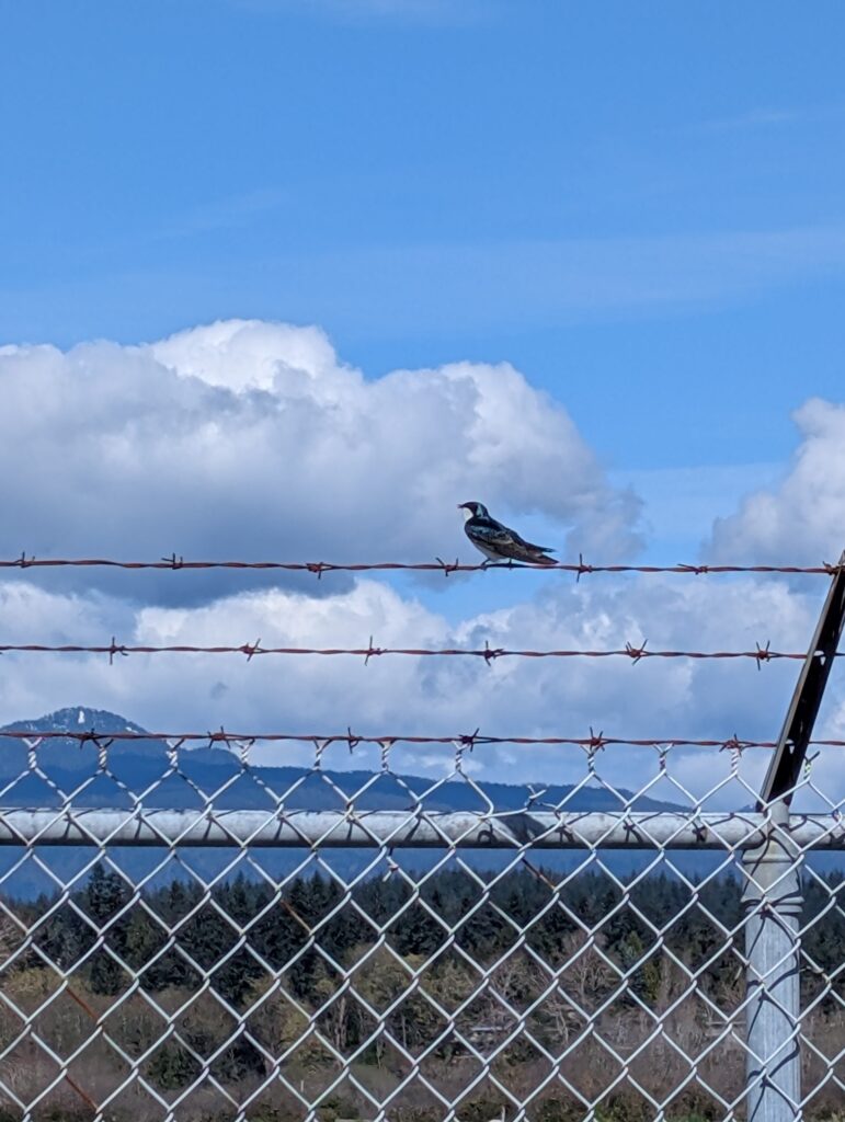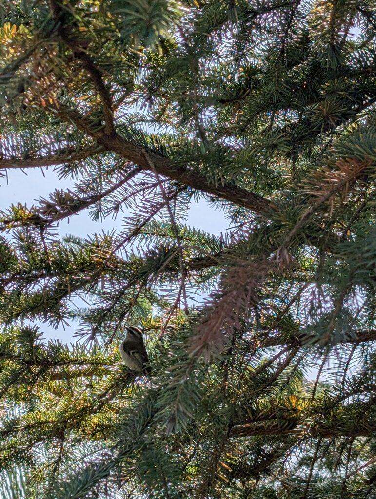 Two examples of birds I saw while at Iona – a swallow (not sure if this fella is a tree or violet-green swallow, but mostly I saw tree swallows) and a golden-crowned kinglet, of which there were many in this spruce.