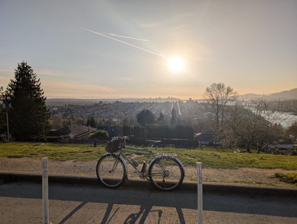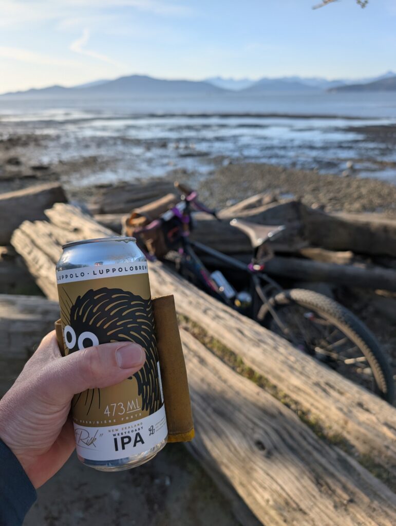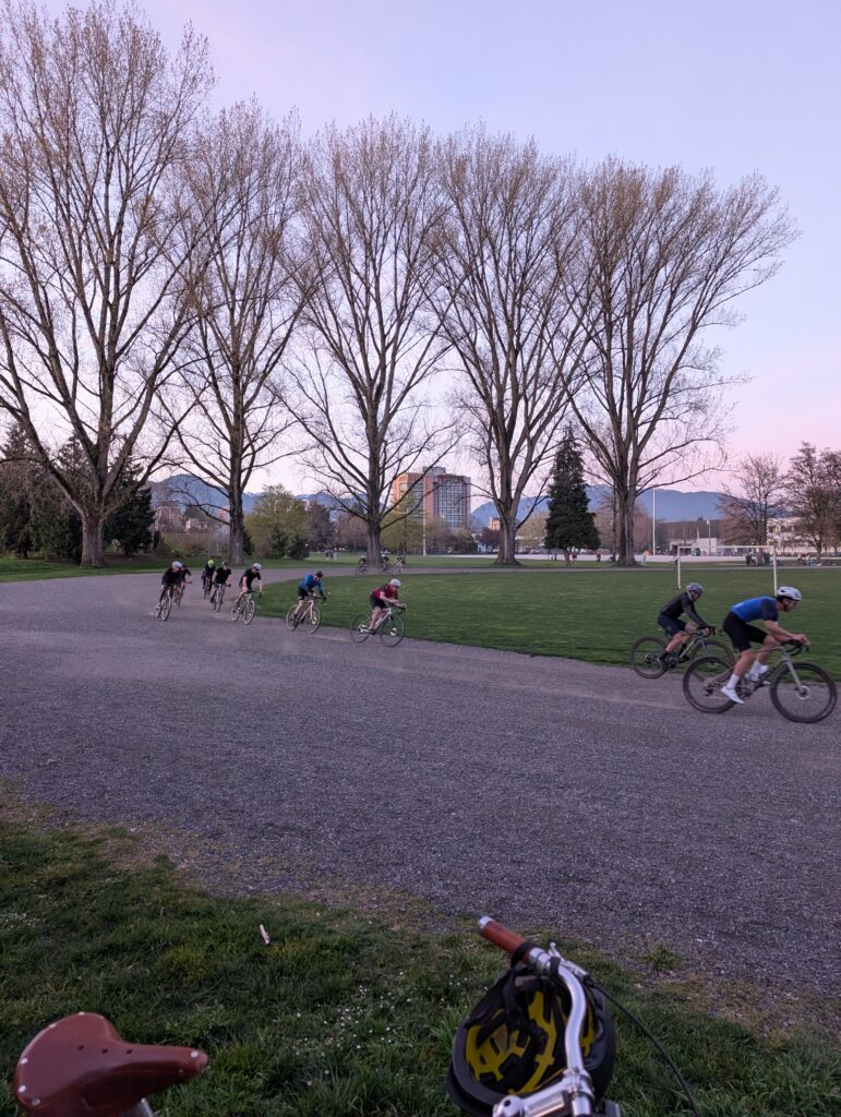 I rode it again Thursday actually, this time for a TCR (tall can ride) with longtime pals out to Spanish Banks in the far west reaches of Vancouver. We then backtracked to the Strathcona park oval, where a 100 lap race was nearing completion. I regularly visit this park but I always assumed the gravel loop is just a running track, albeit a large one – turns out, it was a car race course in the late 50’s and early 60’s! Then hosted bike races more recently – so it’s good to see it getting used for its purpose again.