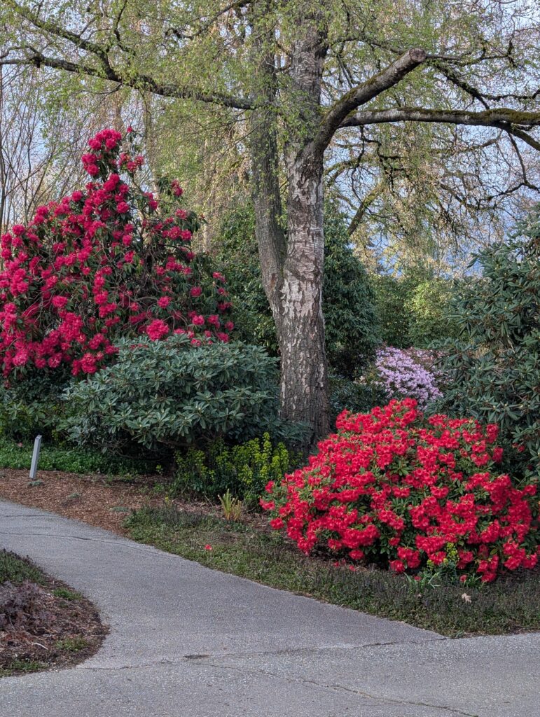 Wednesday I got out for a nice Deer Lake loop, what has become an established route for me, taking MUPs and small trails to connect up a largely car-free 25km figure-8 shaped loop. I wanted to go to Deer Lake in part because their rhodo-heavy garden should be coming into bloom now, and indeed it was looking pretty good: