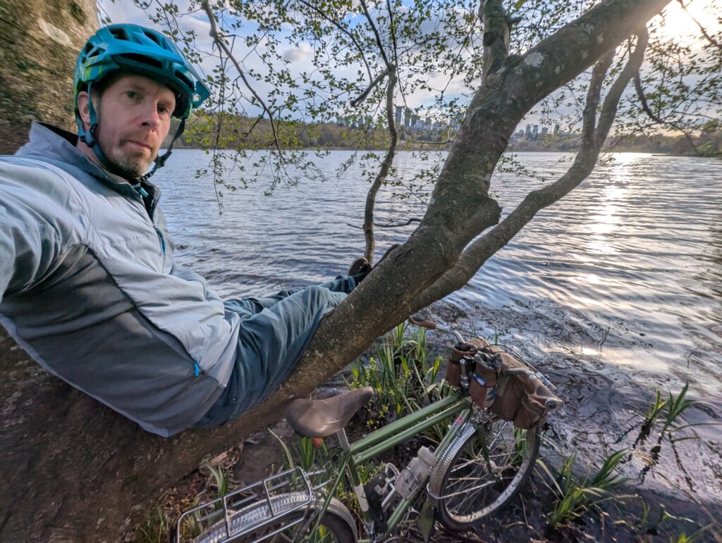Years ago I found a tree that is actually remarkably comfortable to sit in, overlooking the lake. It’s become a spot for me to have a beverage on many occasions since.
