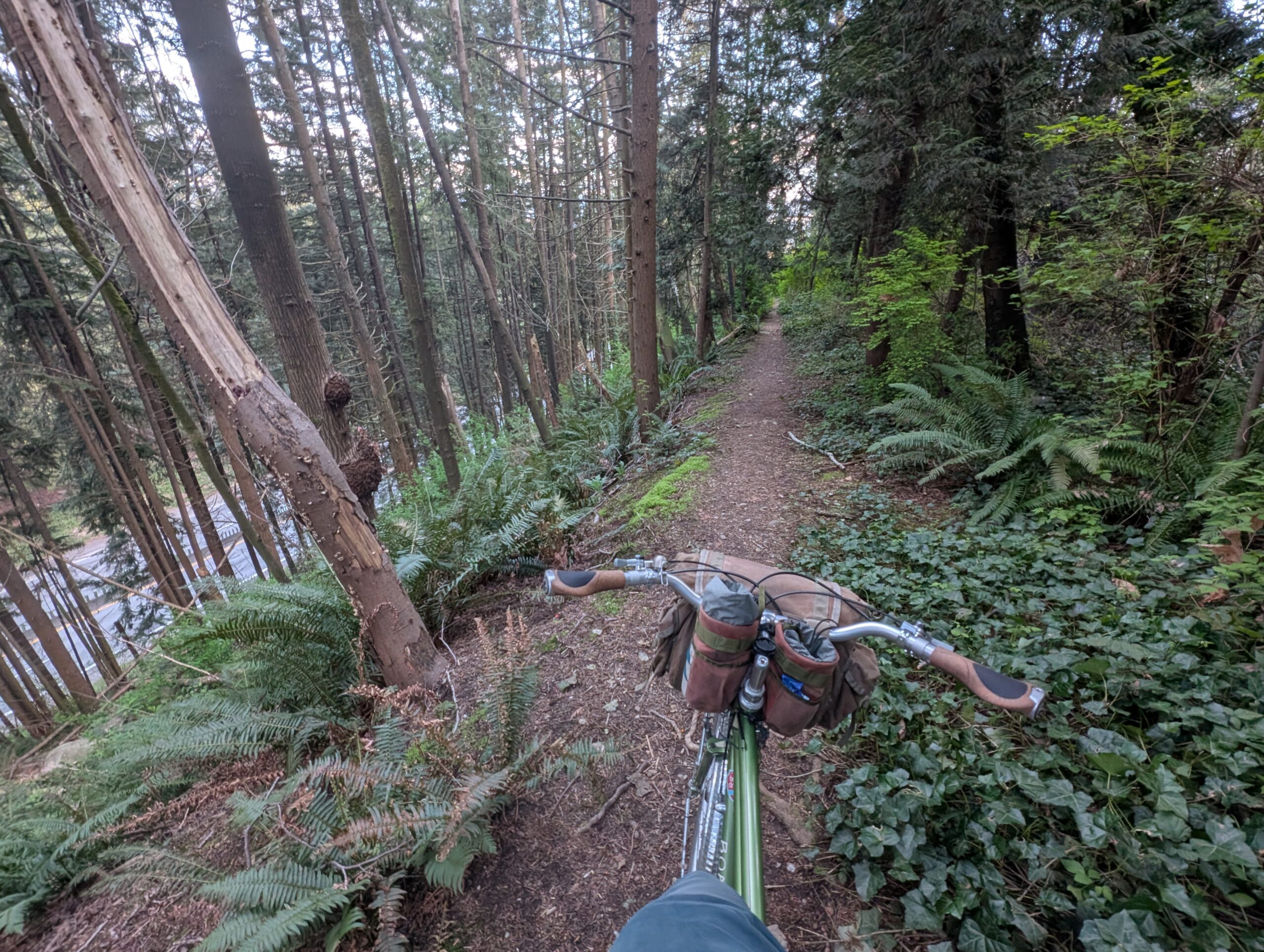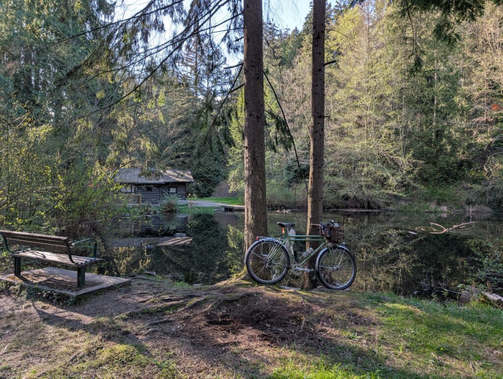 The following day I went back out on the Bombadil after work, this time for a two-bridge loop of North Van and up to the pond at Murdo Frazer Park for one of my favourite benches: