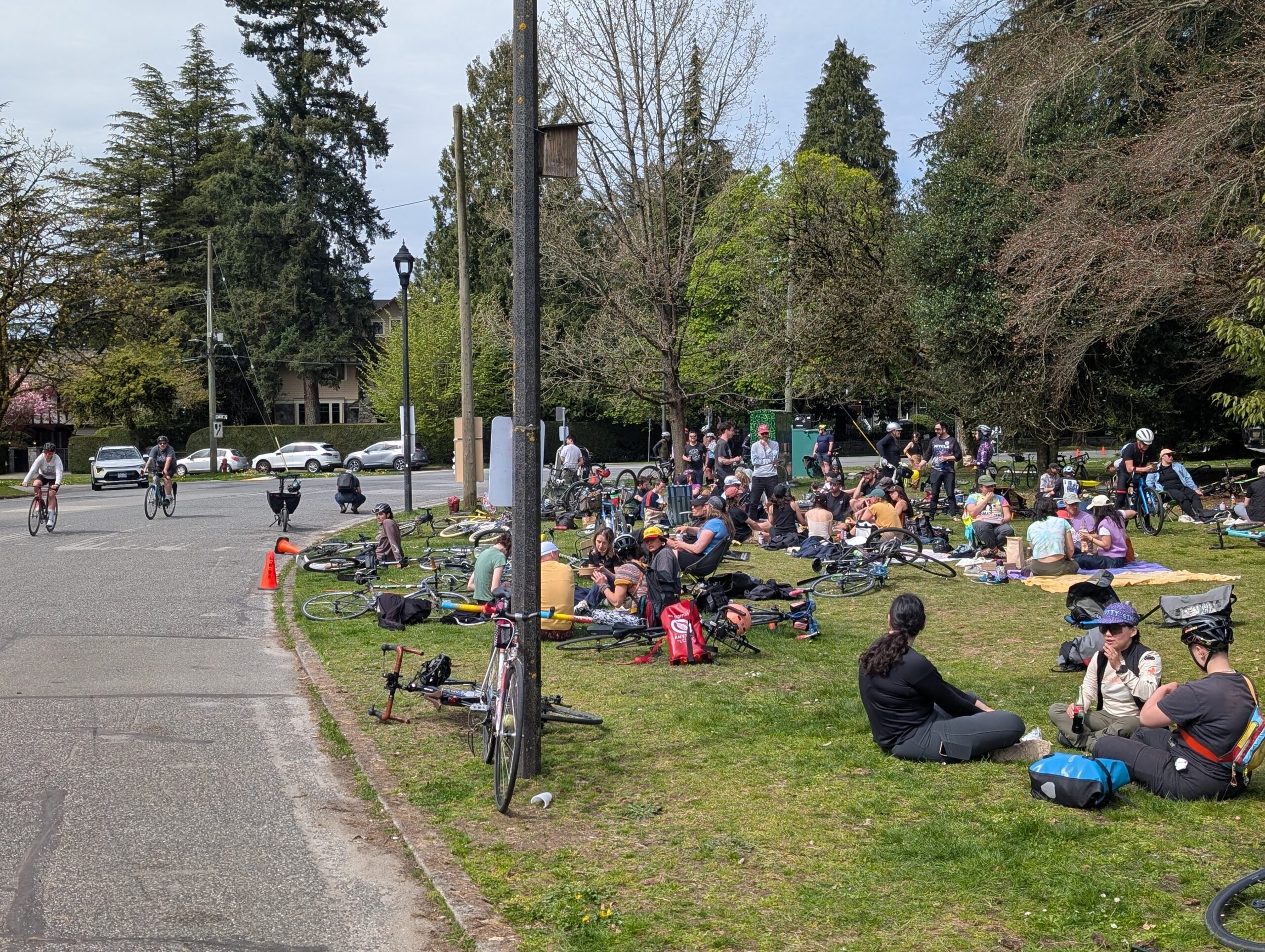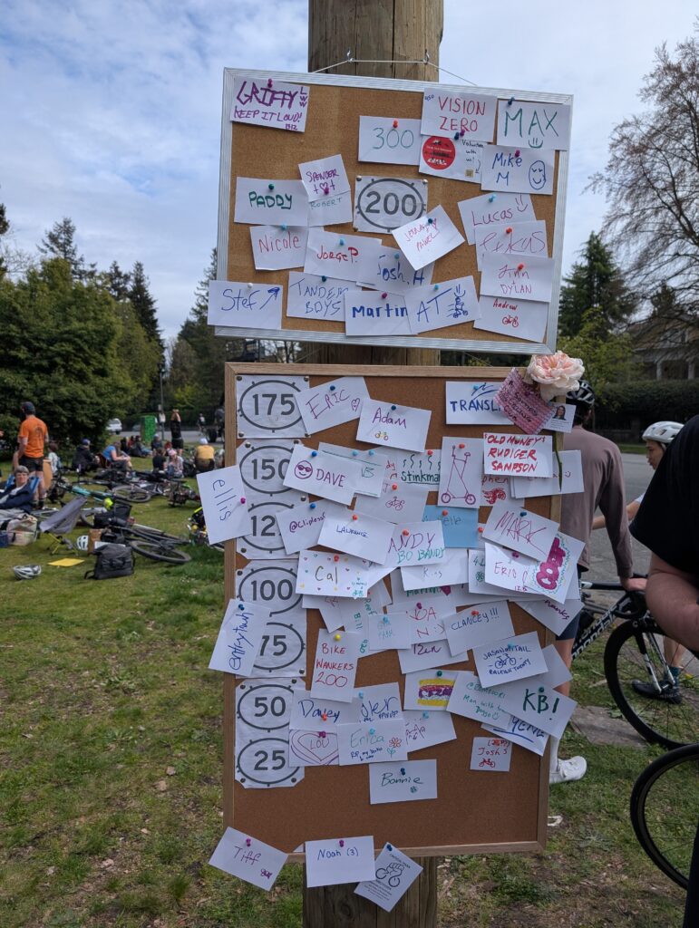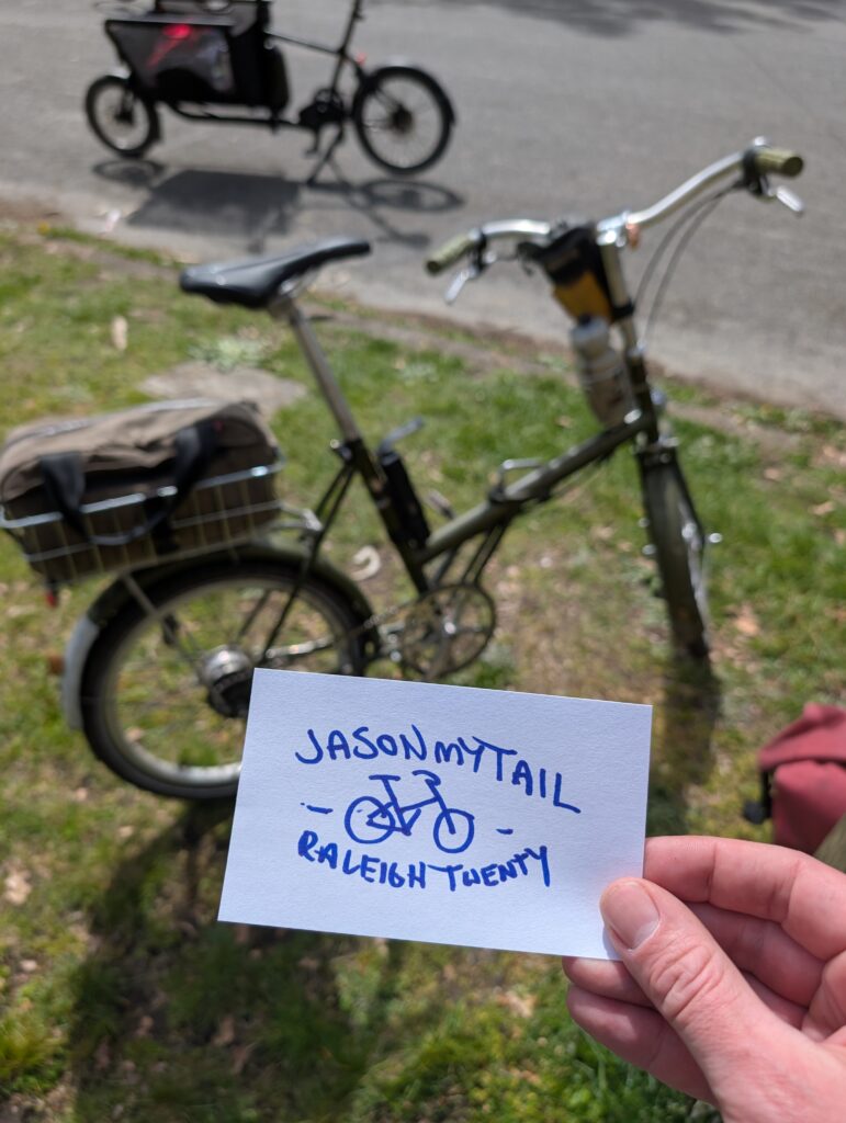 I took Friday off riding except for two short trips for a lunch meet and to pick up sushi, then Saturday was the Crescent 200 at Shaughnessy Park. It’s our version of LADDS500, essentially – riding around in a 0.6km loop for as many times as we wish, 200 being the “official” goal. I rode my Raleigh Twenty, in the spirit of bringing something less practical, and ended up doing somewhere around 70 laps? In the end it was 53km door to door, my second longest ride on the Twenty. I met some new people and saw lots of friends – a really great day.