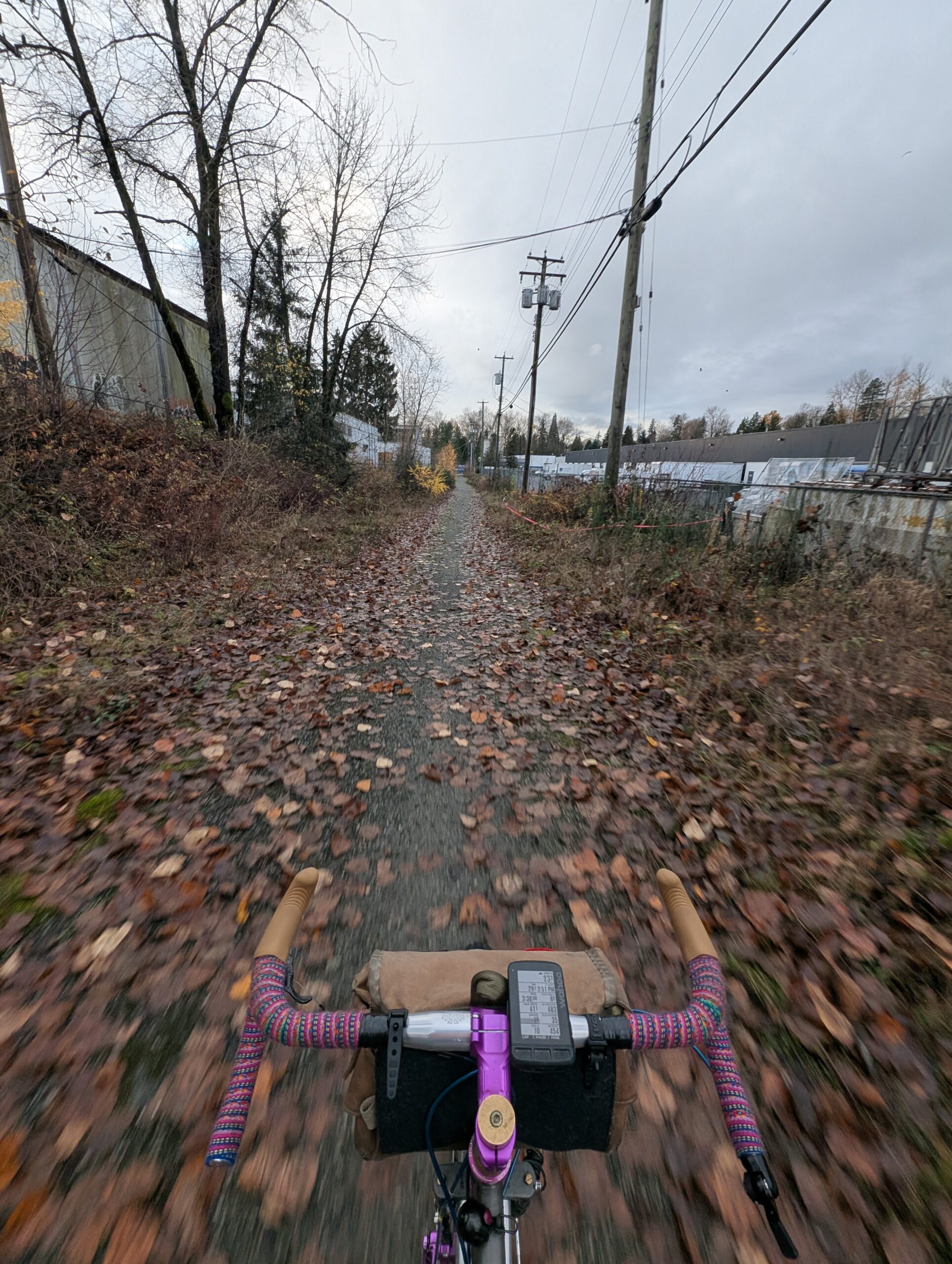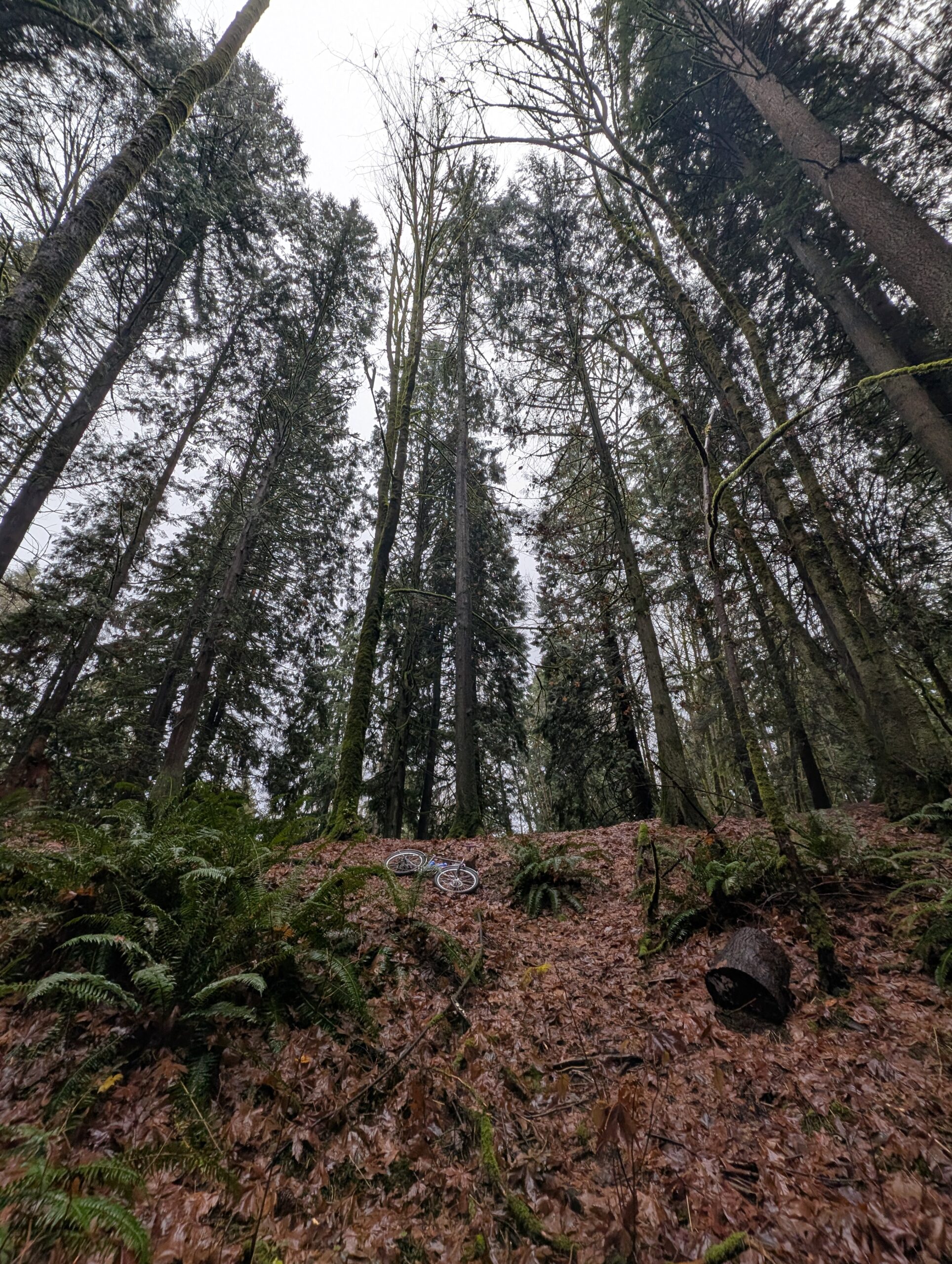 I headed for North Vancouver with the intent of exploring a few connections I’ve been wondering about, but taking some of my favourite paths and trails to link it together. About 10km in I had what I think is the first proper chain-suck experience in the past bunch of years – see below. It bafflles me the chain was able to force its way through, given the clearance between chairing and frame is less than half the width of the chain. I replaced the BB not too long ago with one that’s juuuust a bit wider and that’s where I went wrong I guess. I usually run a spindle length that puts the inner chainring as close to rubbing the frame without actually making contact as possible.