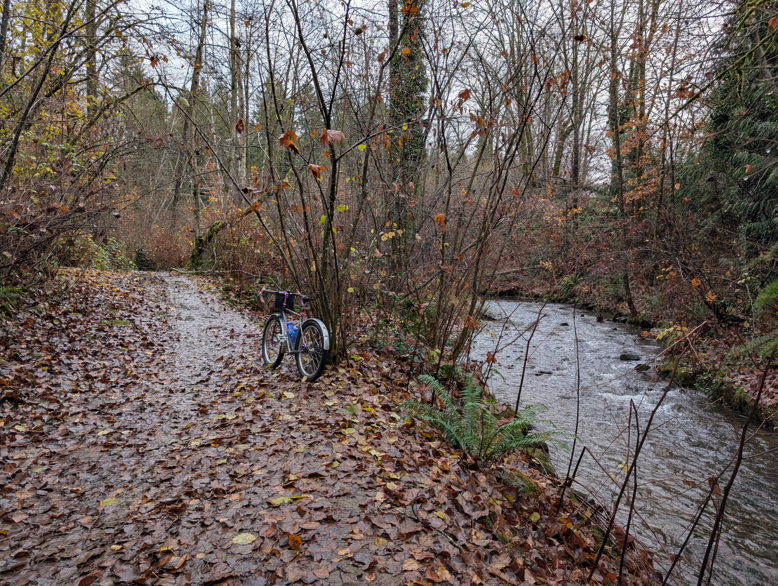 I did some light trespassing on the descent from here because it connects too wonderfully not to – and the only reason it’s closed to bikes is because of construction which was not active today, anyway. I also took a sweet, sweet path we found on my birthday ride (above, middle) which was just as elating the second time as the first. The photo of the creek? I looked like a weirdo climbing down off the rich-person street for this photo, but I acknowledge that I am a weirdo and I do these things.
