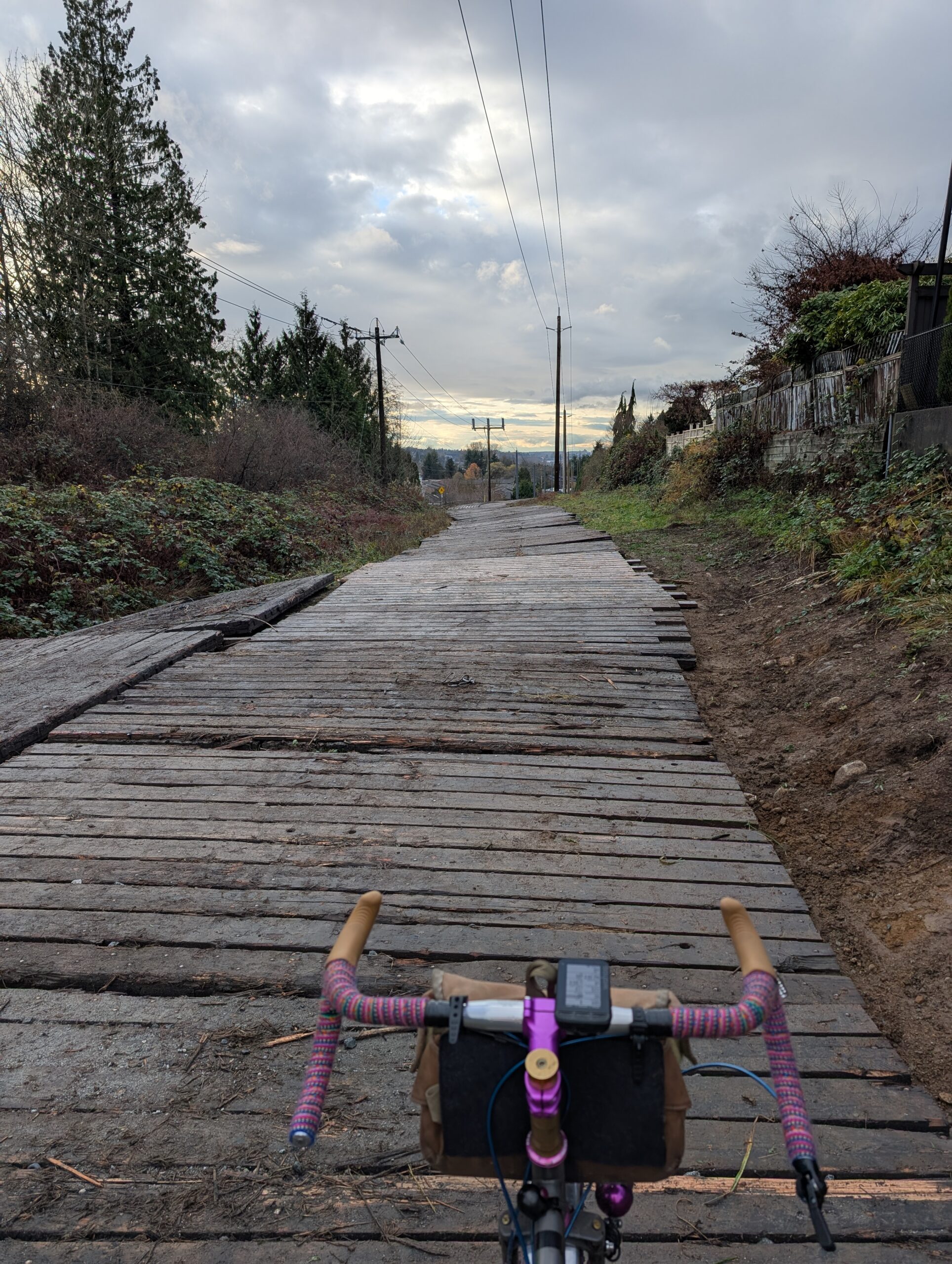I’ll link the route at the end of this post for those who might be curious. I guess you’d need to know the area for it to be of any value. I wasn’t really trying to ride a “good route” in the sense that others might enjoy it; I’m not sure if this kind of route works for anyone who is trying to follow a route. I suspect it’s most enjoyable when it’s come about organically while exploring neighbourhoods, and something gets lost when trying to follow a GPS track in unfamiliar terrain. But, that said, I do think this is a great path to take on your bike, despite the occasional set of stairs. See below.