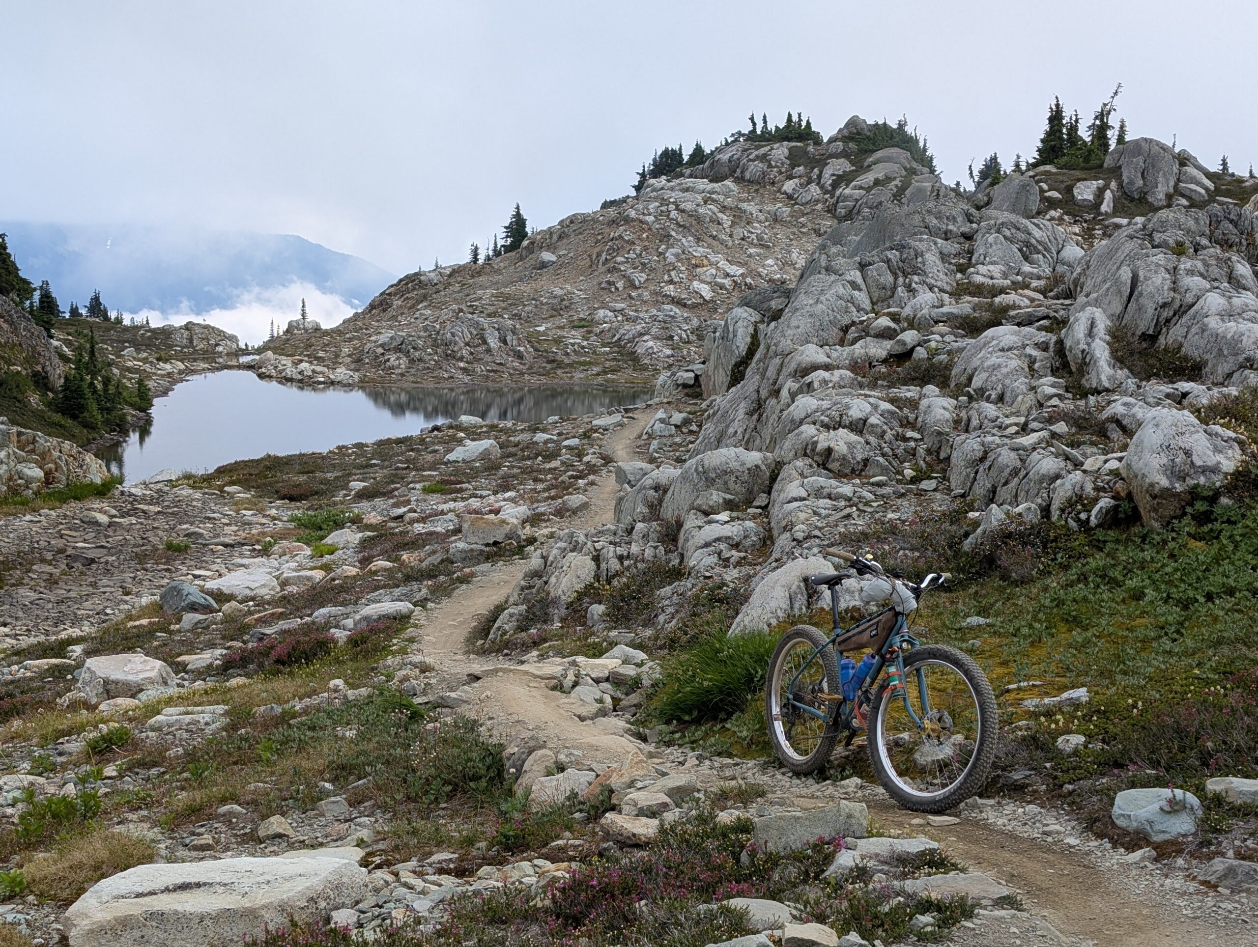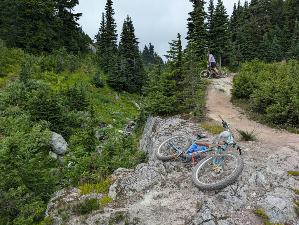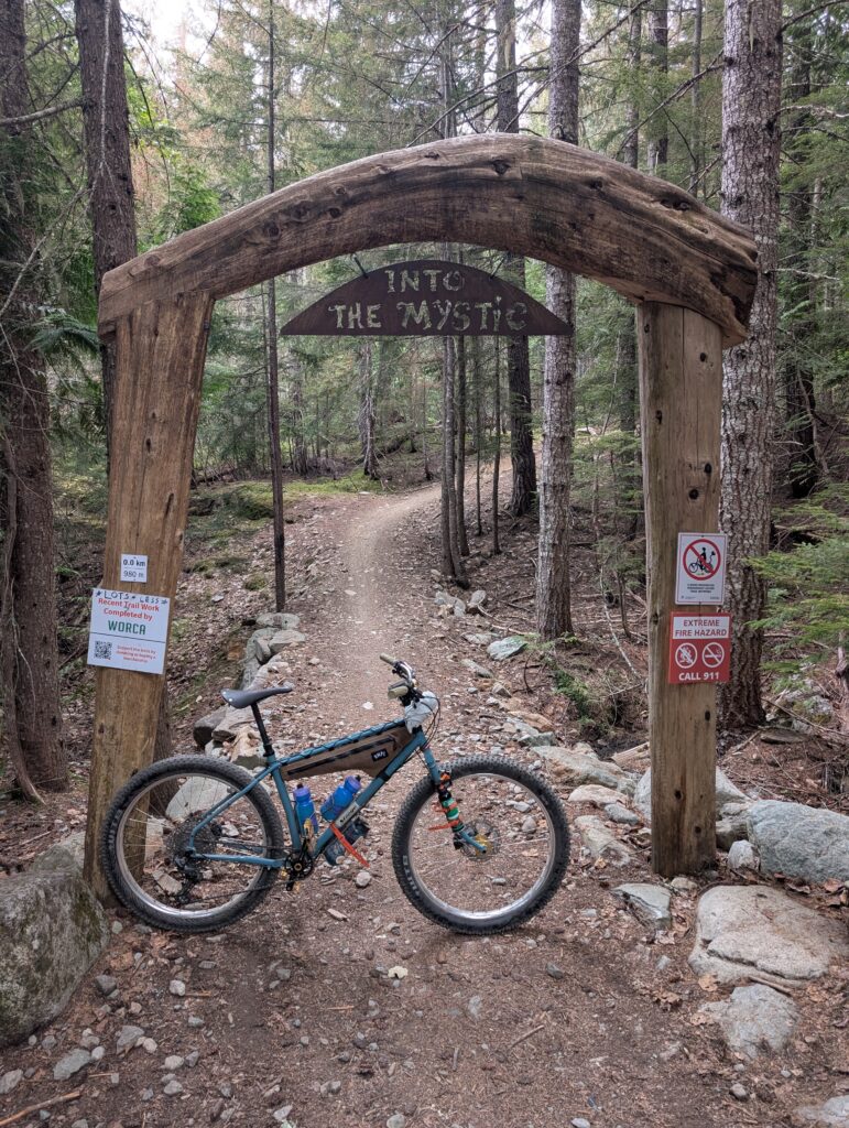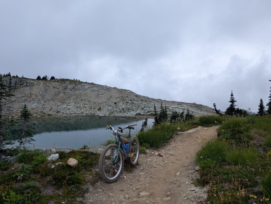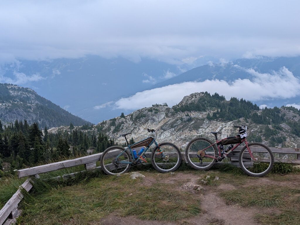 On August 4th my friend Tay and I drove up to Whistler at 5am and rode Into the Mystic / Lord of the Squirrels, an epic loop that climbs all the way into the alpine followed by a 1200+m descent. This was a life-altering kind of ride. I thought I made a blog post about it, but it seems like I am mistaken! So I’ll have to share a bunch of photos here. We each took our Stooge – me on a Scrambler and her on a Tracker, both bikes outfitted with plus-size tires.