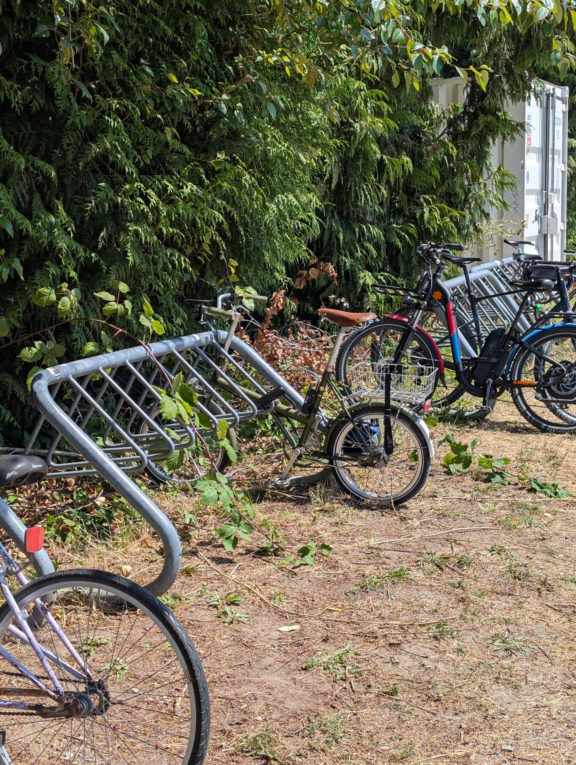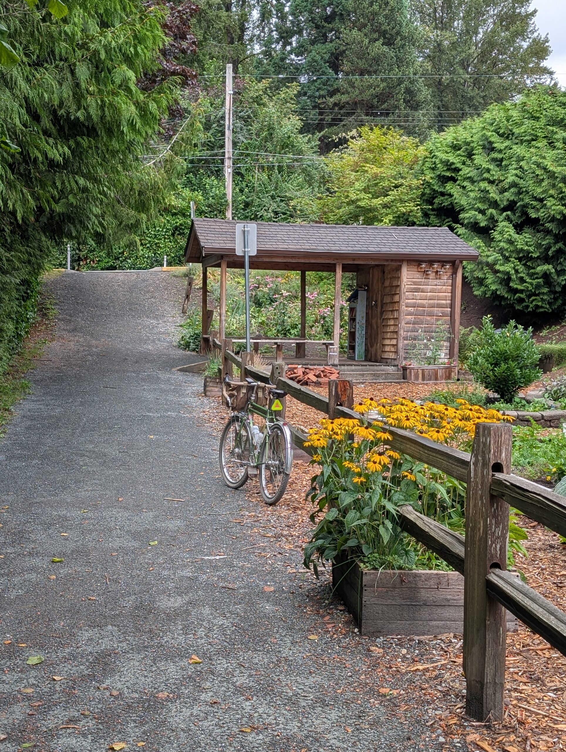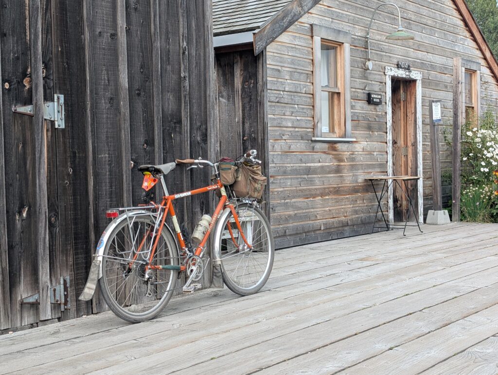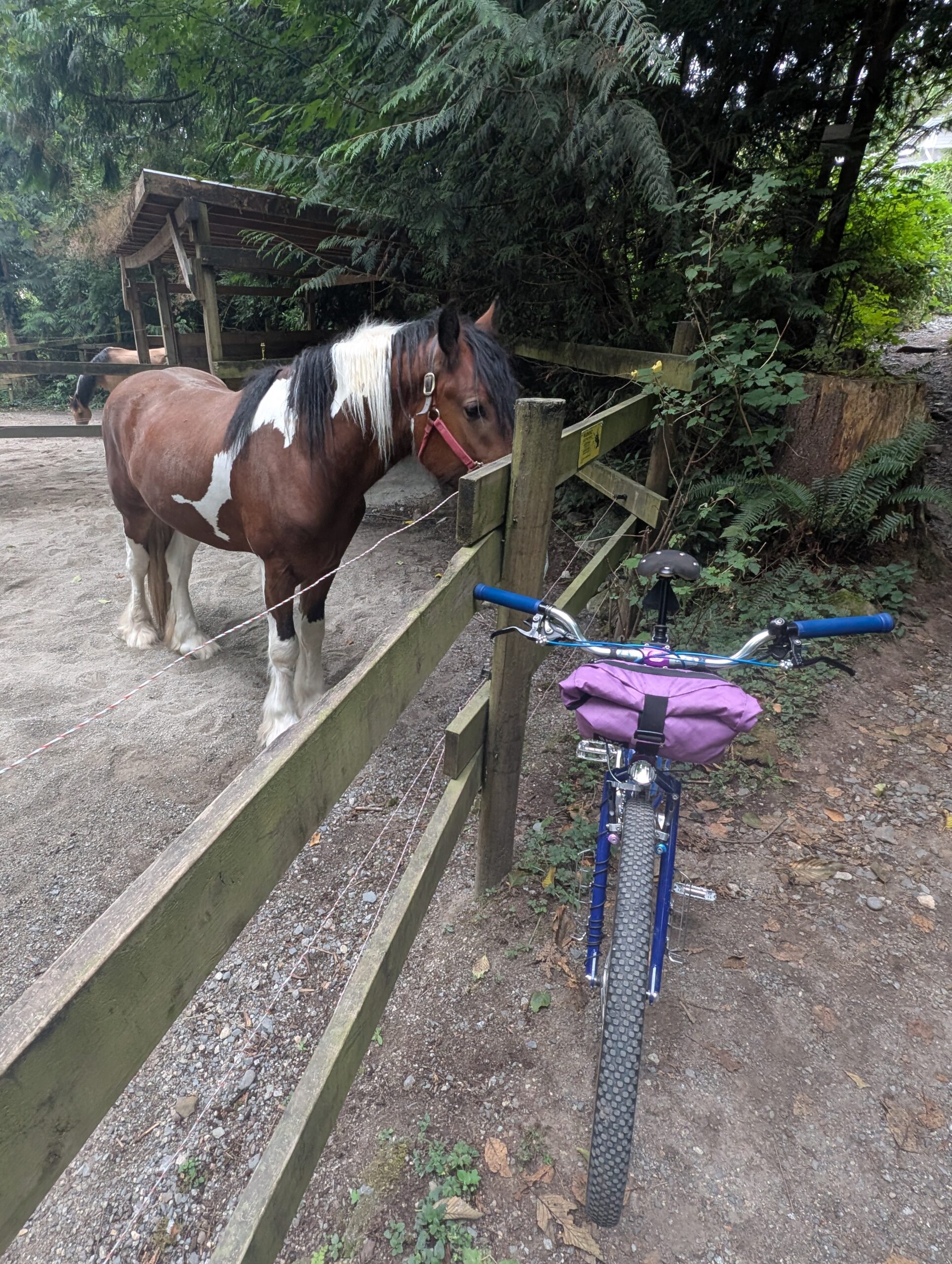 I was also welcome to ride Aimée’s mom’s bike: a vintage mixte that was much too small for me. I’m impressed she likes the bars so low; I already feel too old for that. The bike hadn’t been ridden much in the past who-knows-how-long, but got the tires pumped up and the brakes dialled in. So far it had been raining most of the time since we’d arrived, so a bike ride was not imminent – plus, I did obviously have to prioritize spending time with the people we flew across the country to see.