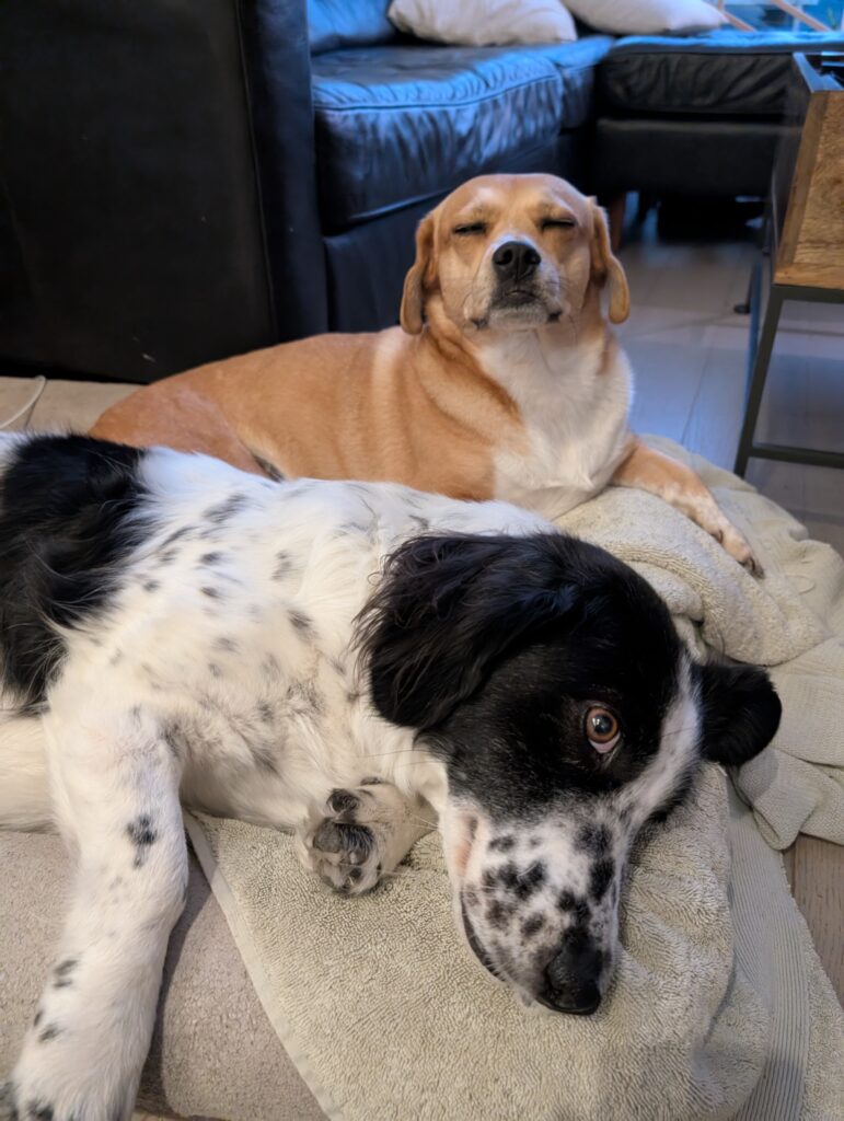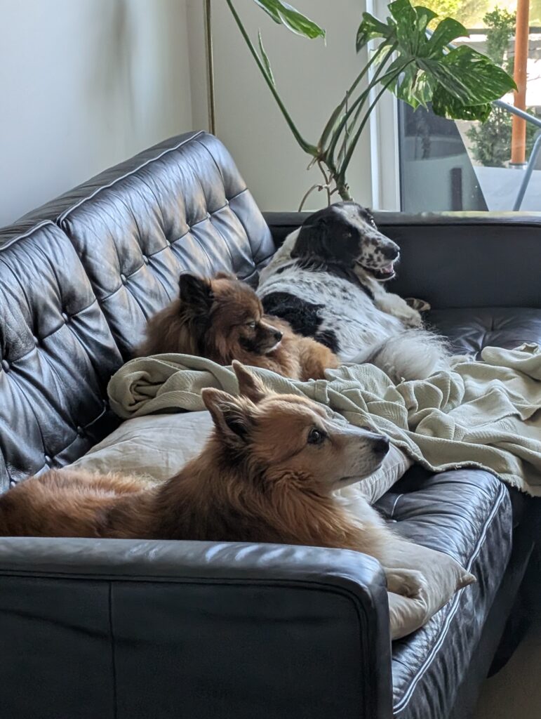The next day Sunny and I went for a big walk over to the PNE grounds. She has proven to be snuggly and curious and pretty chill until she gets the zoomies. Her and Leia continue to become more comfortable around each other – Leia would get up and leave if she laid too close initially, but the trust has been building. Sunny is clearly very respectful of Leia.