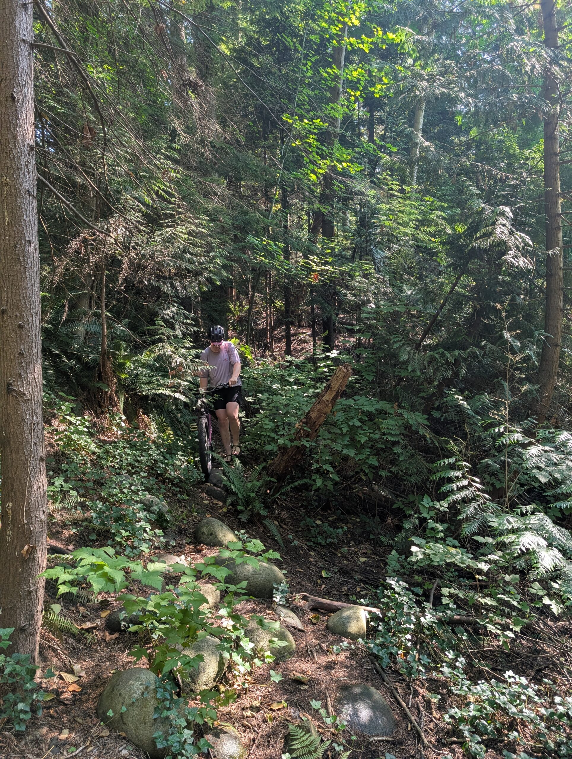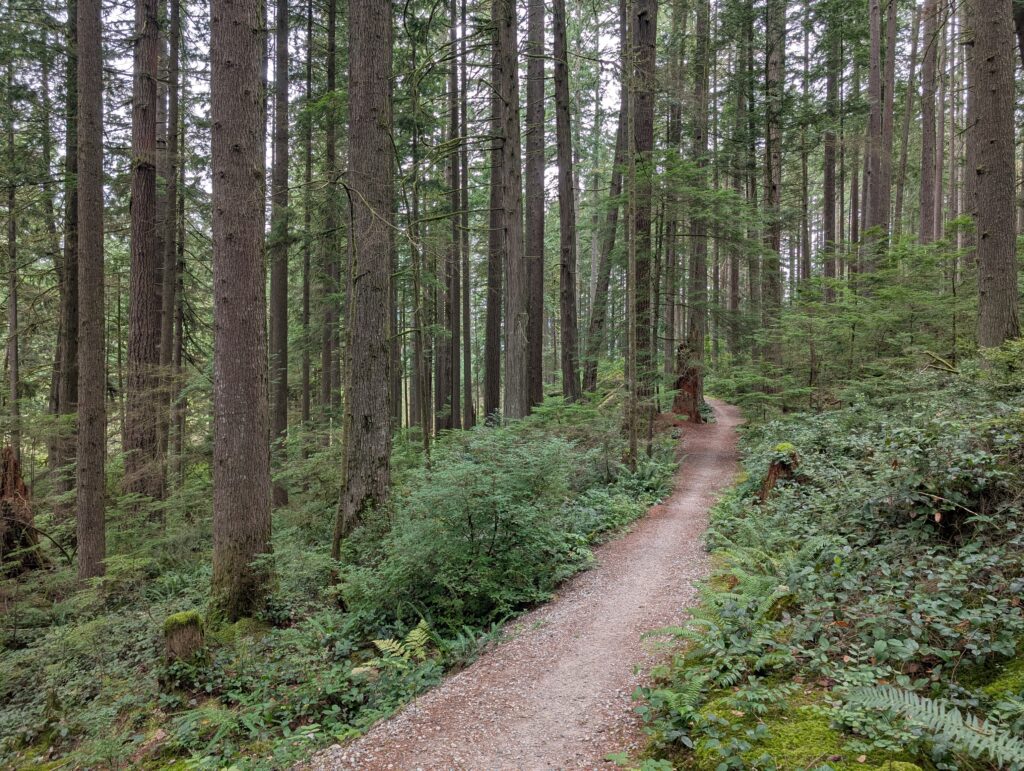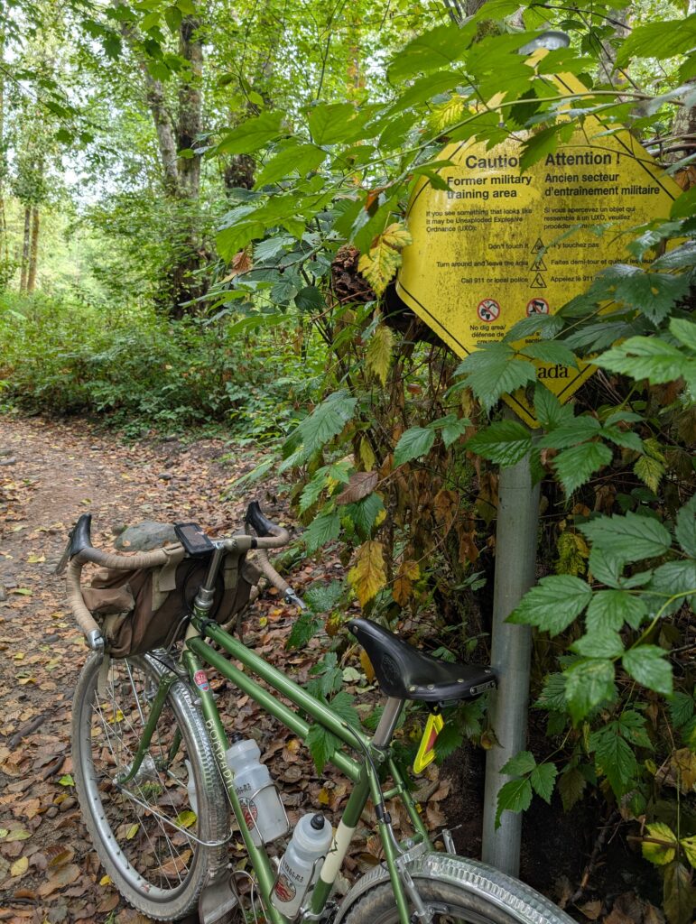 The next weekend, after some rather unseasonal rains, I got out on the Bombadil and headed to North Vancouver. I rode through the former Blair Rifle Range where there’s still signage around about potential explosive munitions – which keeps me on-trail! The recent rains and rather unseasonably wet August to date also maintained the lush green in the forest, something I did not take for granted.