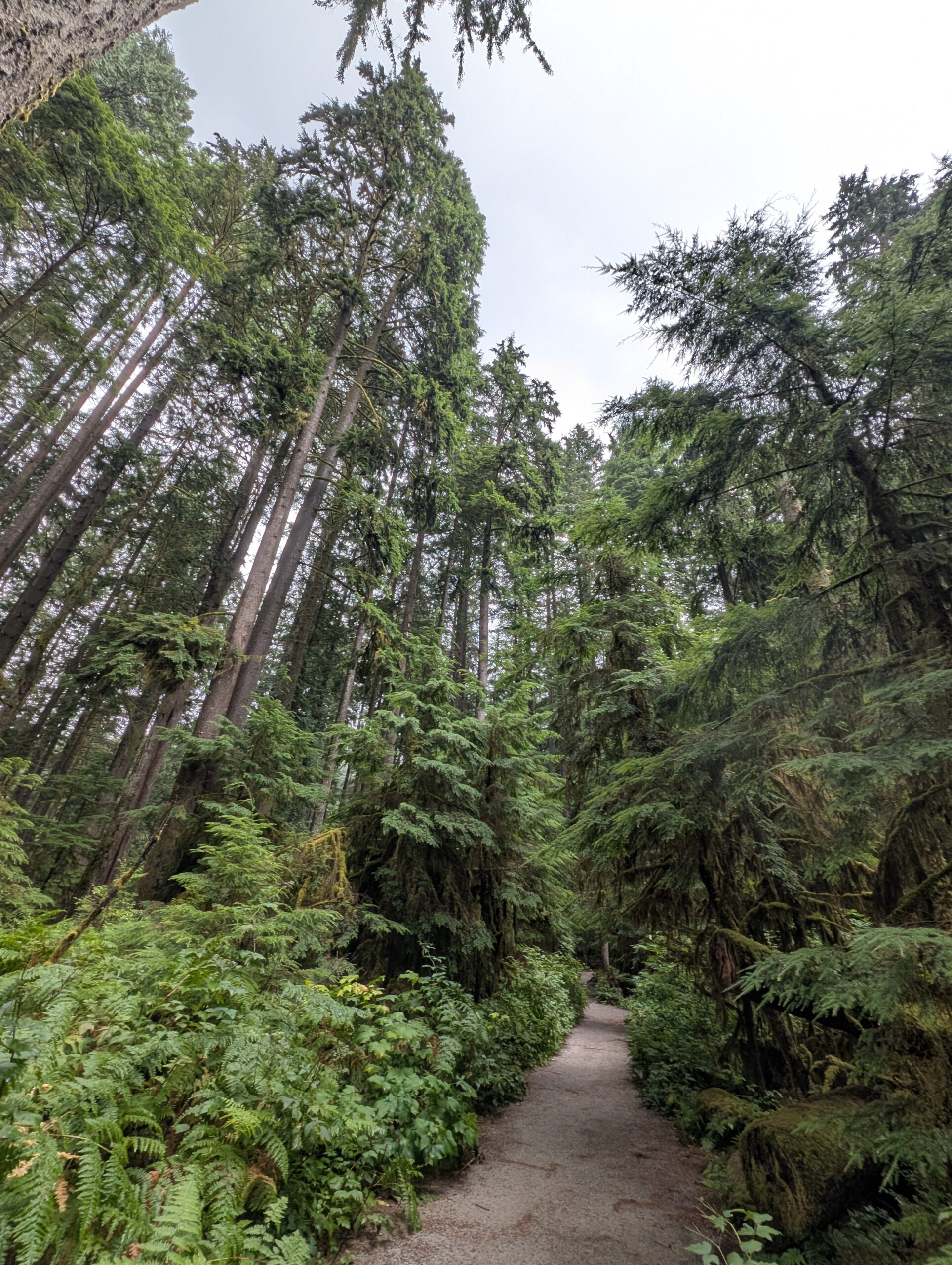 The first half is gravel access road, but then there is about 2km of trail at the north end that is the highlight of the route (as I’ve surely said before), and highlight among the highlight is the Rainbow Creek loop. Appearing prehistoric, this moss- and lichen-covered area is home to some very old Sitka spruce.