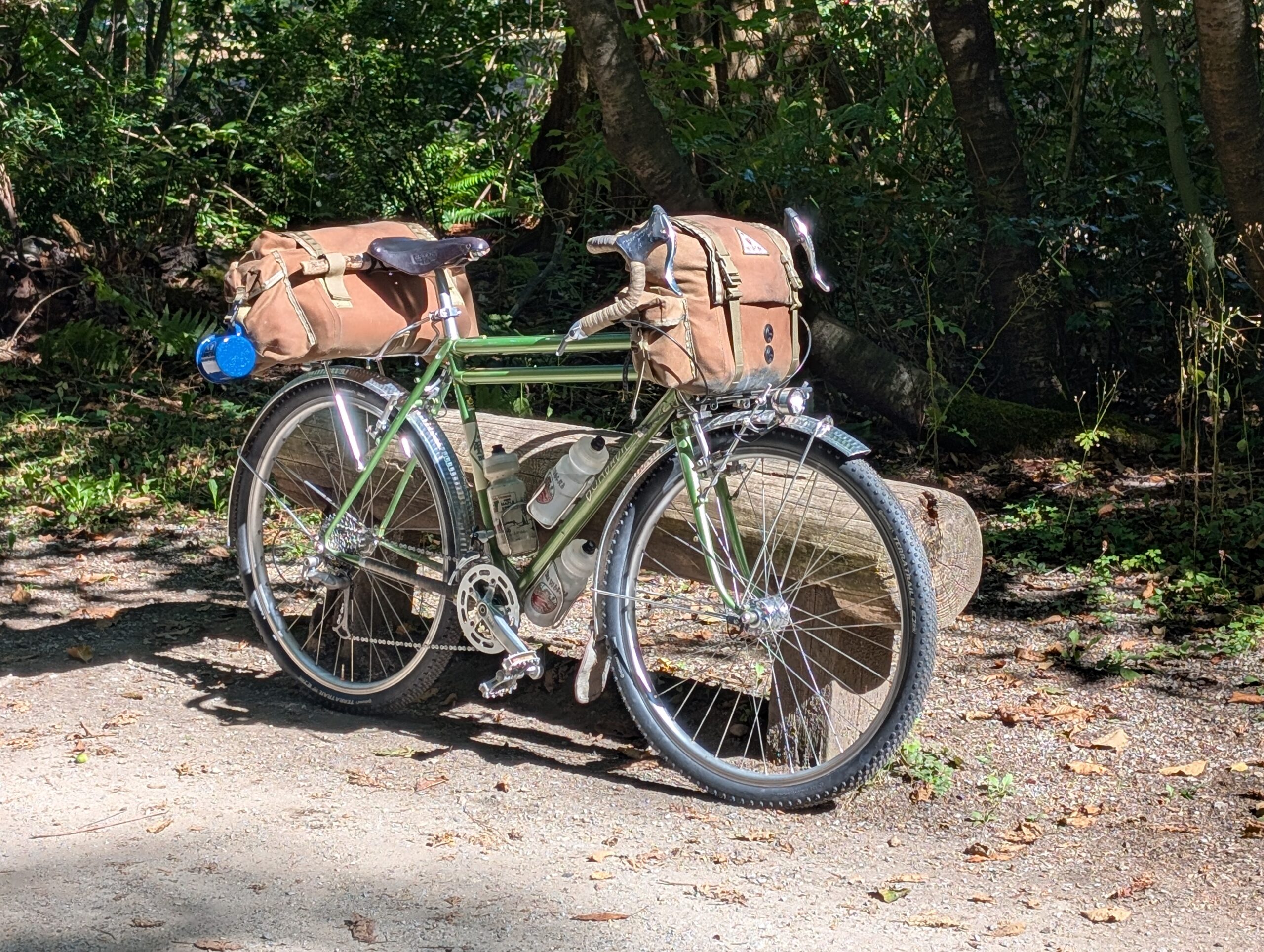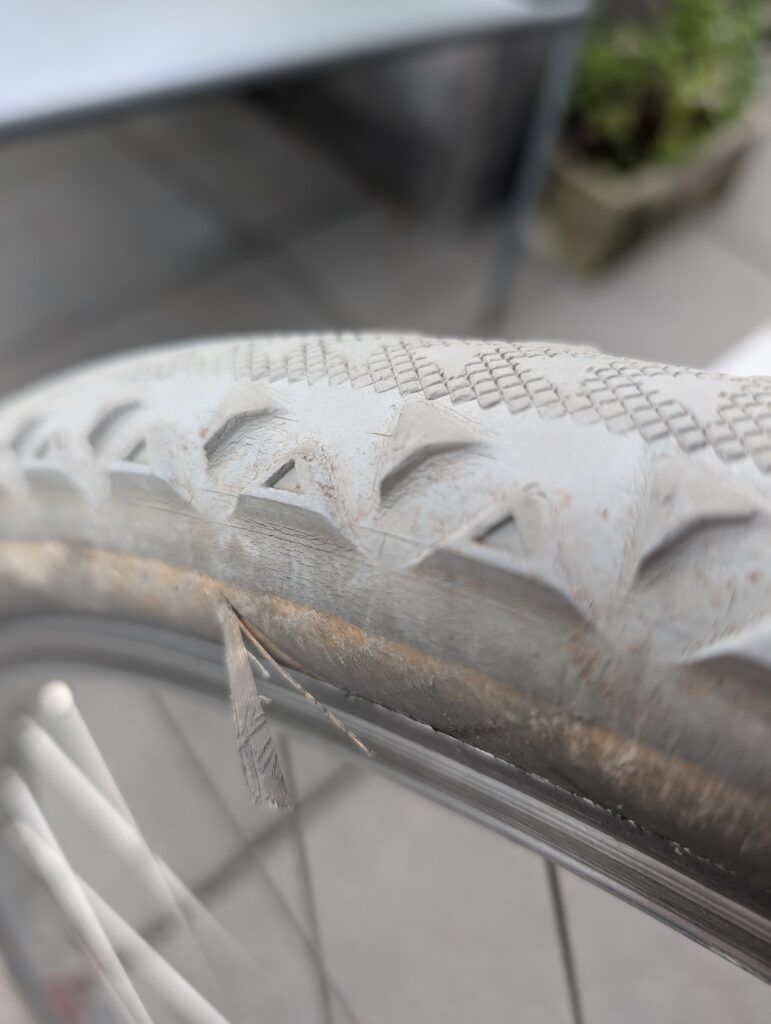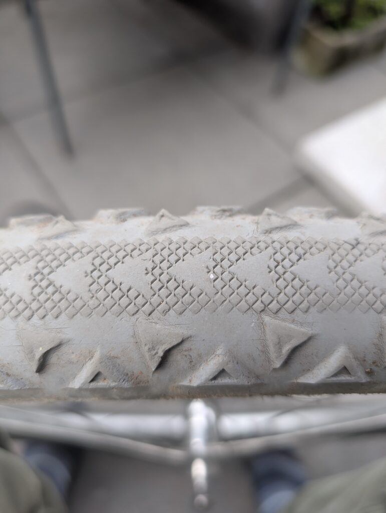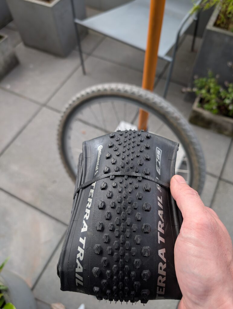 August 17th was New Tires Day for my trusty Bombadil, replacing the very worn and UV-damaged Ultradynamico Rosé, which treated me quite well for 2+ years but were clearly ready to retire. This was my second set of Rosé, a tire I ran on this bike from the start in 2020. The replacement is Continental’s Terra Trail gravel tire in 650B x 47mm, though it measures a bit smaller. I write this on January 3rd 2026, about 4.5 months later, and they’ve been great over about 850km so far. I did get a flat tire on the very first ride on them, but haven’t since. They’re both more quiet and I believe faster than the Rosé, though their off-road cornering grip isn’t quite as good.