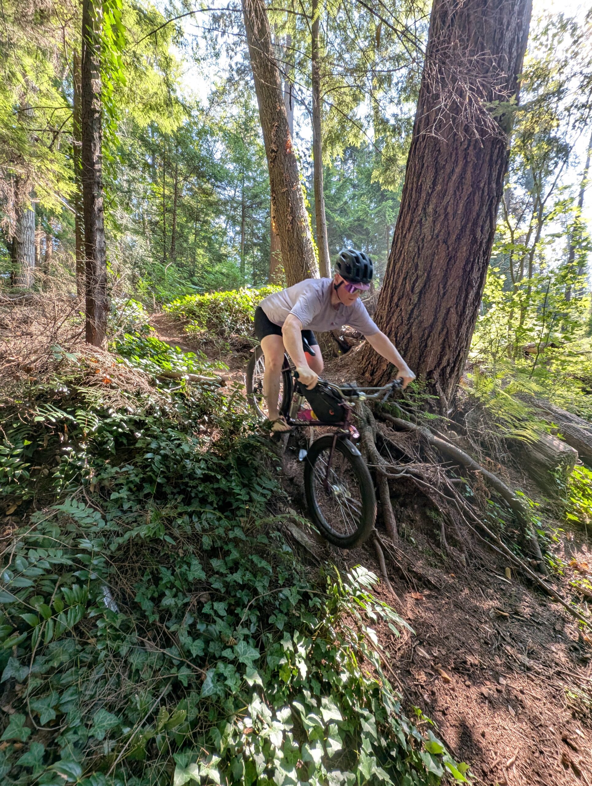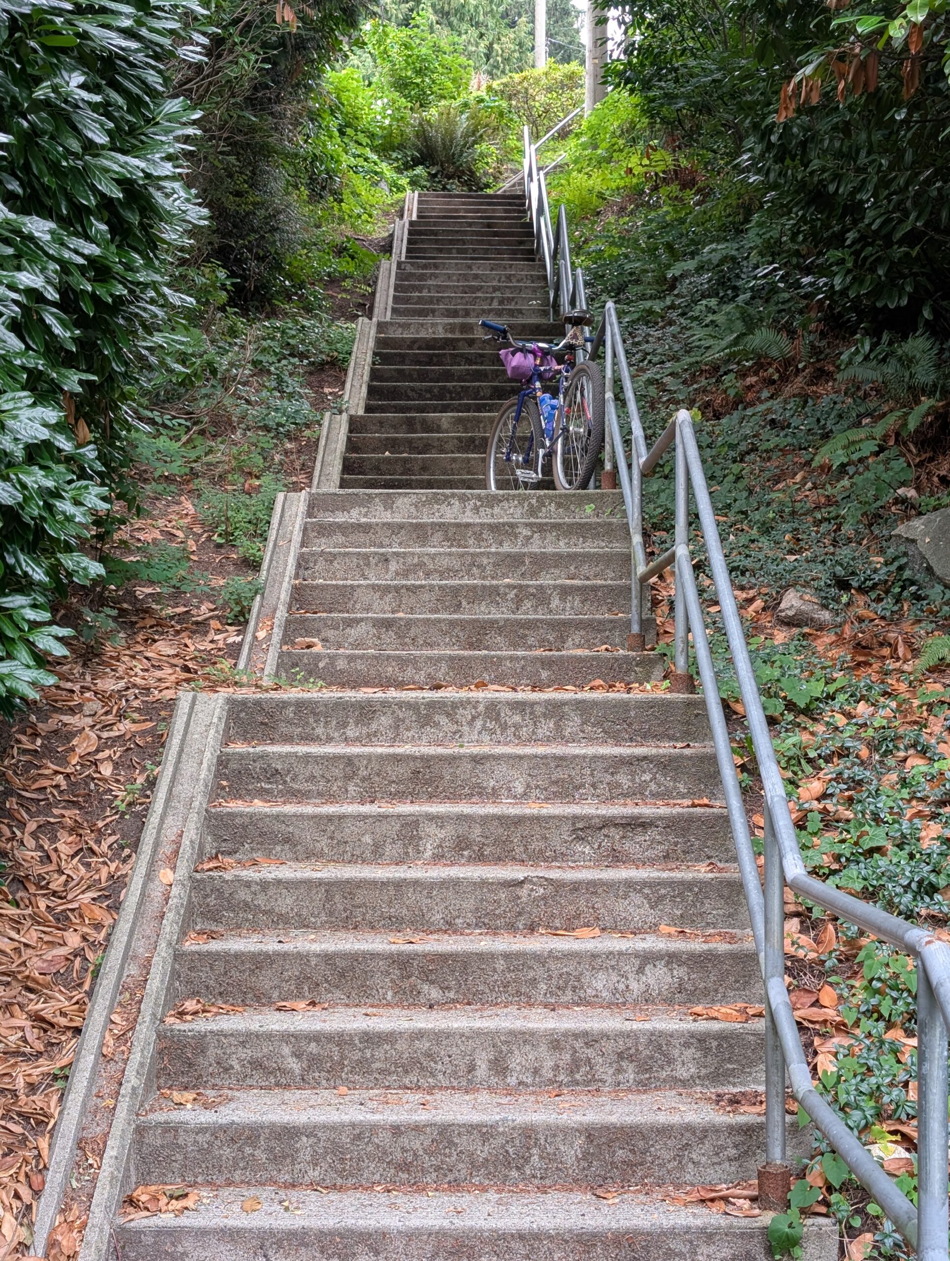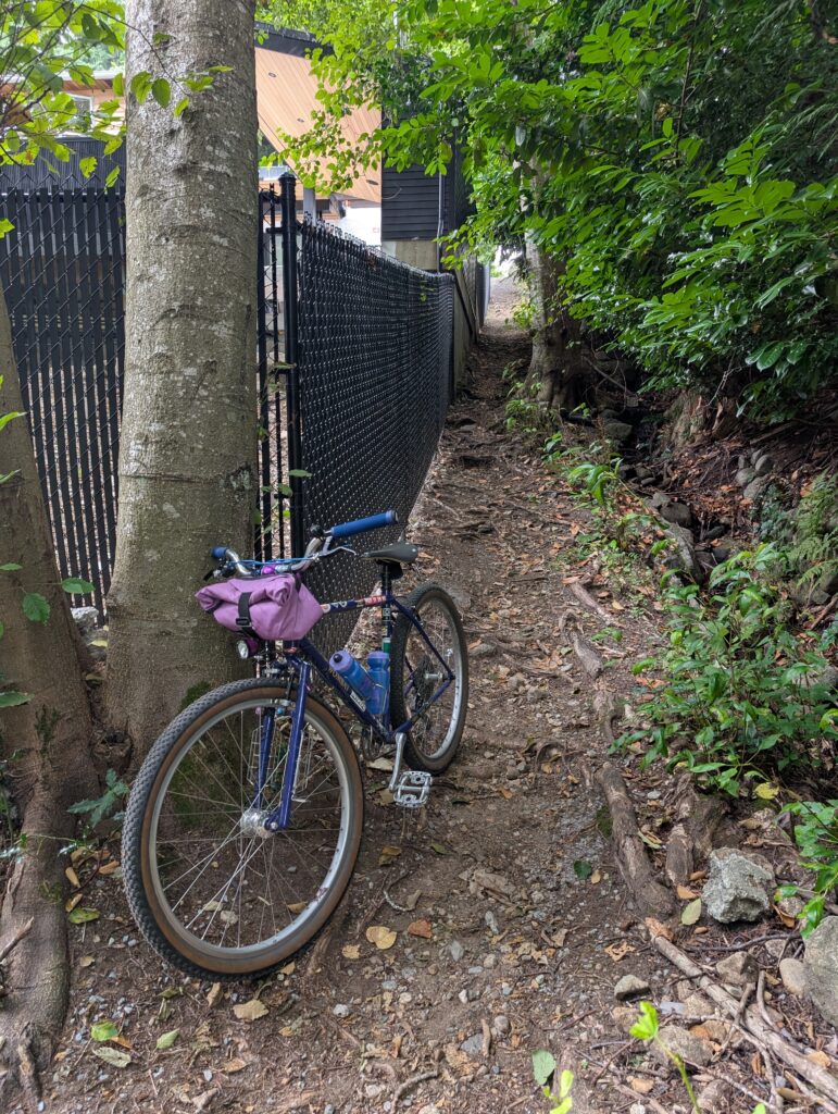 I guess I was still itching to ride my own bikes though, because even though we got home nearly midnight on Saturday, I was out on the Stooge by mid-morning Sunday – and got over 60km in on the big bike. I rode / bushwhacked some trails on Seymour, then worked my way all the way west to Cypress where again I bushwhacked – this time less successfully. I should have probably known when I had to hoist my bike up a literal ladder to get into the trail.