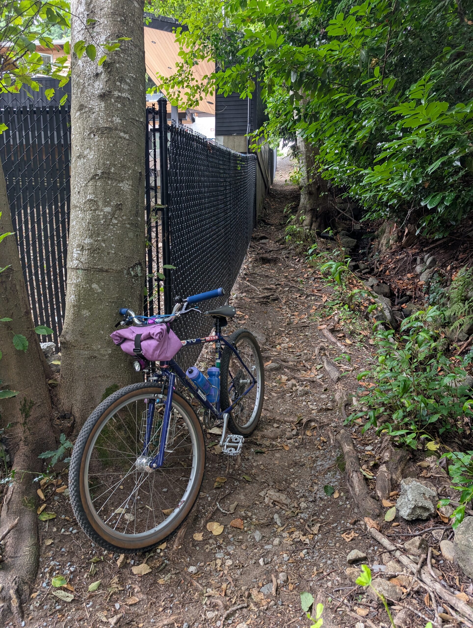 I crossed back into Vancouver and headed east to New Westminster, passing through the southern edge of Burnaby along the way. I swung by Steel & Oak brewing for a couple beers to-go and some much needed fries. There is a bike route that travels along the transit line from there to my place, but I managed to end up on overgrown trails instead – even on what was meant to be a “road ride”. I guess some things never change.