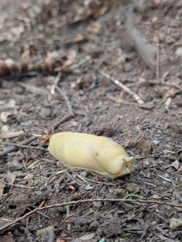 I took the Bombadil and headed over to the north shore. It didn’t take a lot of climbing before I reached some patchy snow. I made my way up Fisherman’s Trail along the Seymour river and didn’t have a real plan for how far I was going to go, I’d base it on the conditions and how I was feeling. It was stunningly beautiful, but the snow was also packing into my fenders. I rode up to the midvalley lookout, then up the Hydraulic creek connector and back on the paved parkway – which felt more like a XC skiing groomer today. As soon as I was back down the hill a bit the snow subsided, and I spent a little bit of time in the oldest corner of the cemetery along my route, reading the old headstones and reflecting on how they, too, are slowly being reclaimed by nature.