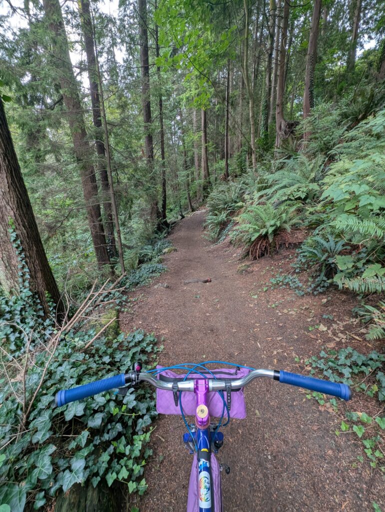 Coming into the last couple days of the month now, I got to take the girls for a good Pacific Spirit Park walk while Aimée had a dentist appointment nearby, then ran an evening errand downtown on the Hillborne and lugged home a few tires, a whole MTB wheel, and a couple 4pks of beer.