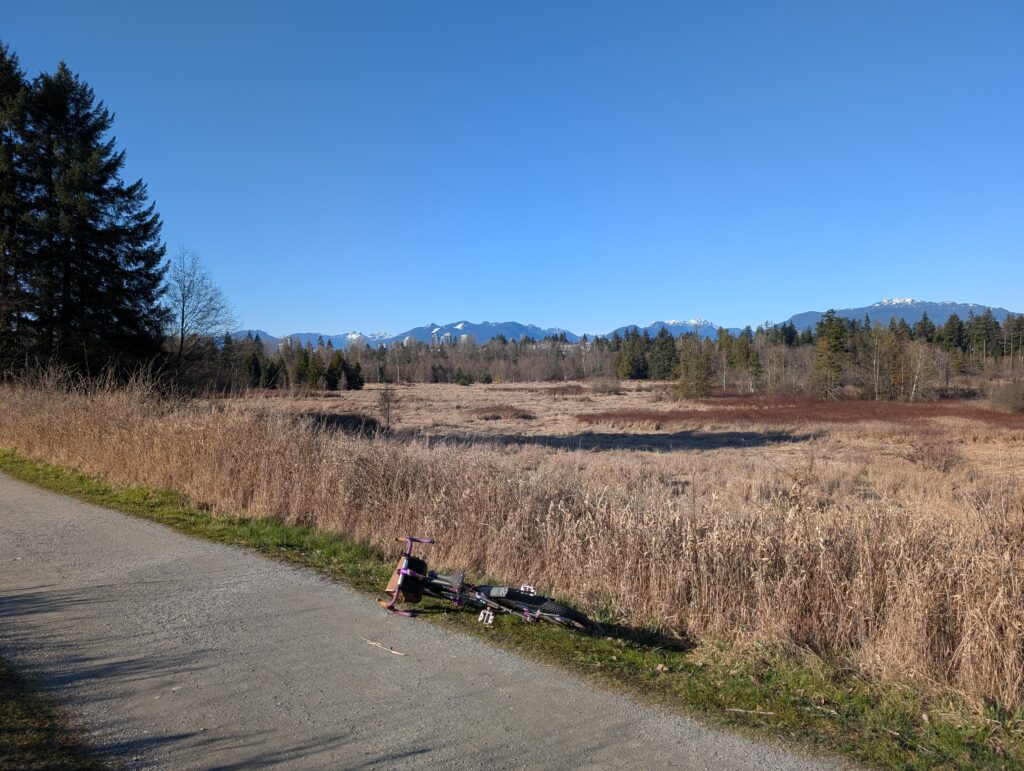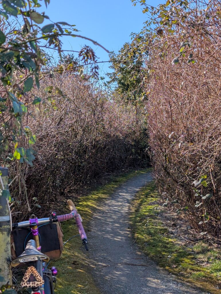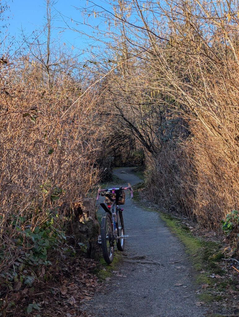 Valentine’s Day was a sunny Saturday this year, and with plans made for late afternoon I was free to get some daytime exploring in solo. I set off to ride the latest iteration of the north loop of my route the Burnabop XL. Some of the most recent changes I had only ridden in the opposite direction so I wanted to check that it wasn’t too ornery to ride this way.