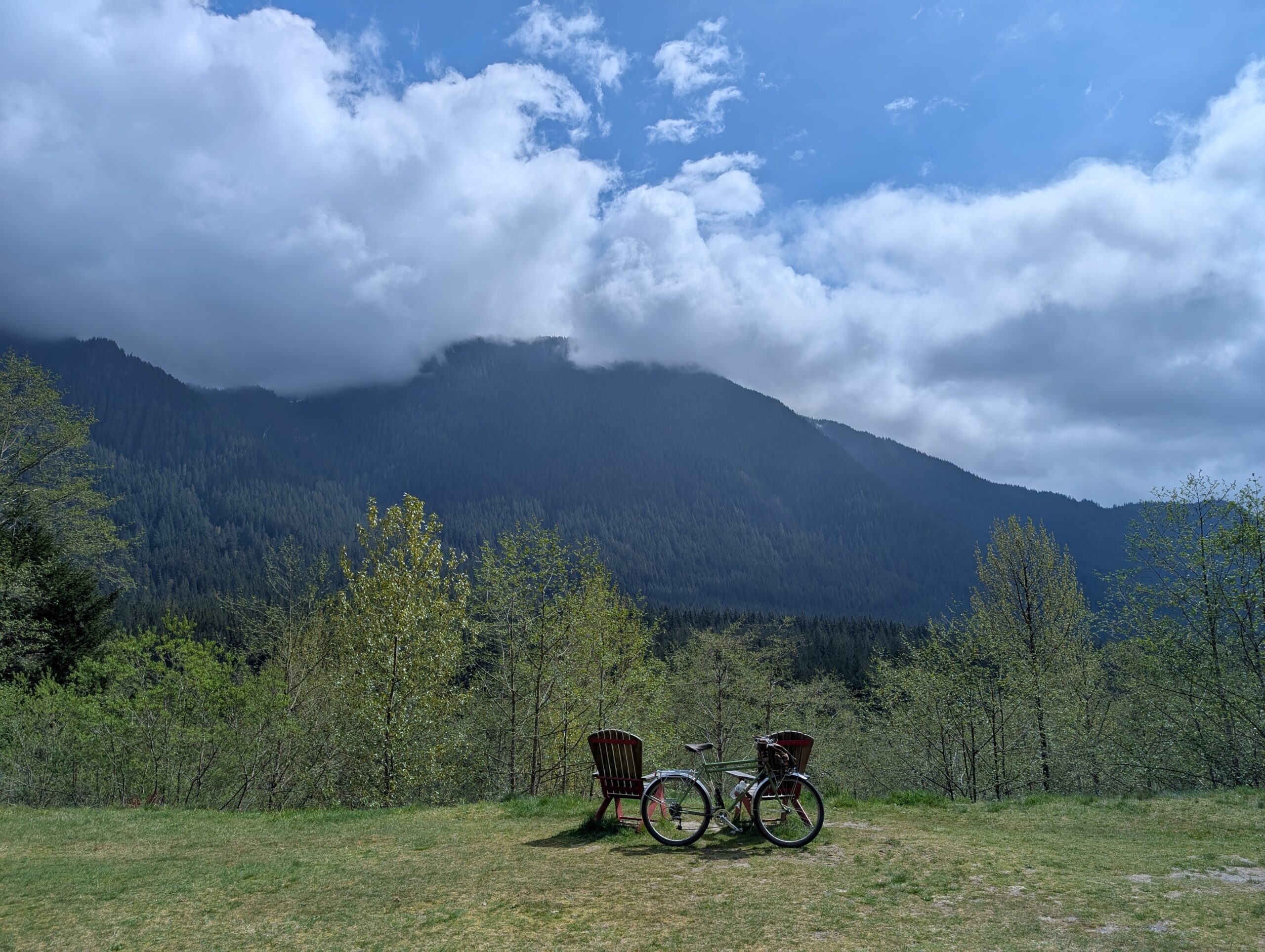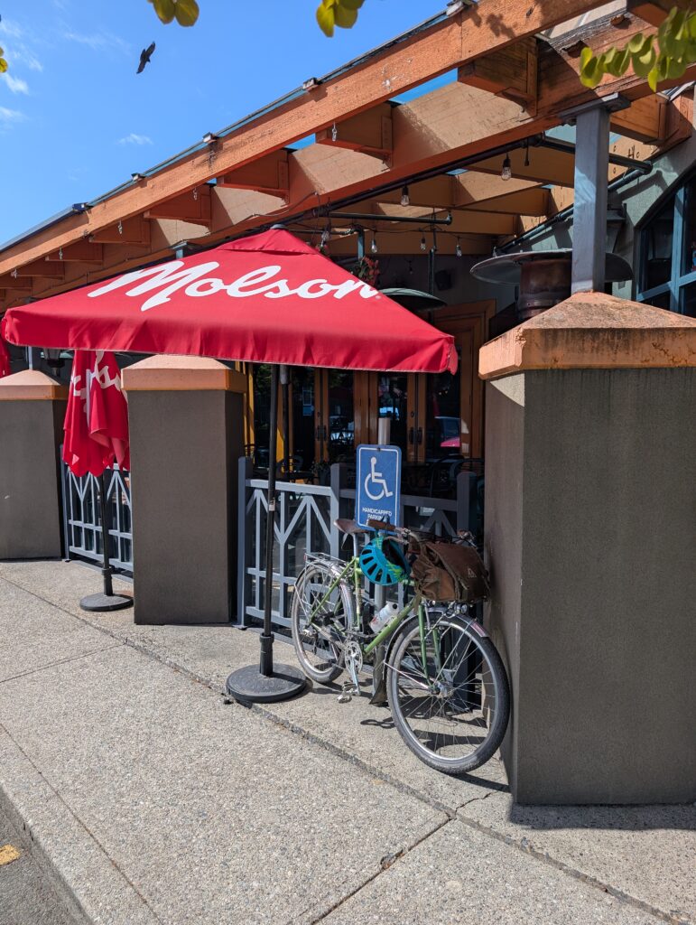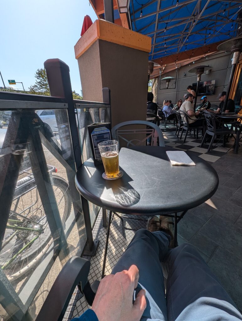 No good pictures to support, but the end of Fisherman’s trail was blocked for construction so I had to make a large detour up the Baden Powell trail to the nearby plateau, which added to my already strong appetite – so when I rode past this patio, I couldn’t help but stop and get some happy hour food and beer. I loved that I could park my bike right beside my spot, and enter from the patio, never stepping foot indoors!