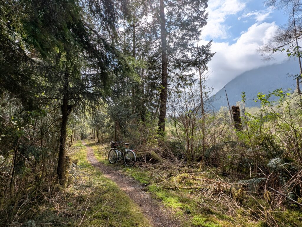 It’s Wednesday, and I took the rest of the week off work. I wasn’t planning to ride today, but while I had my coffee this morning, I started to think about going out into the woods. Specifically, I started thinking about the ‘Temple of Time’ grove mid-way up the Seymour valley that Tay and I failed to find a few weeks ago despite considerable effort.
