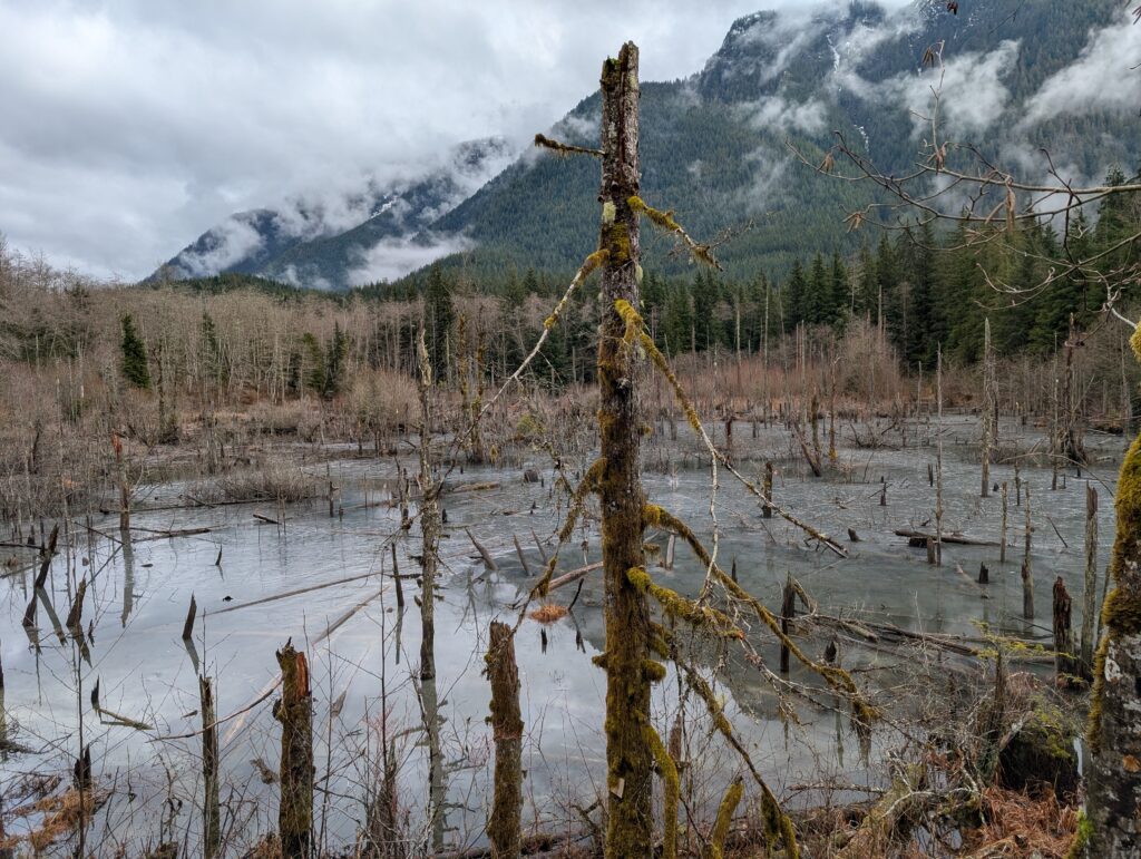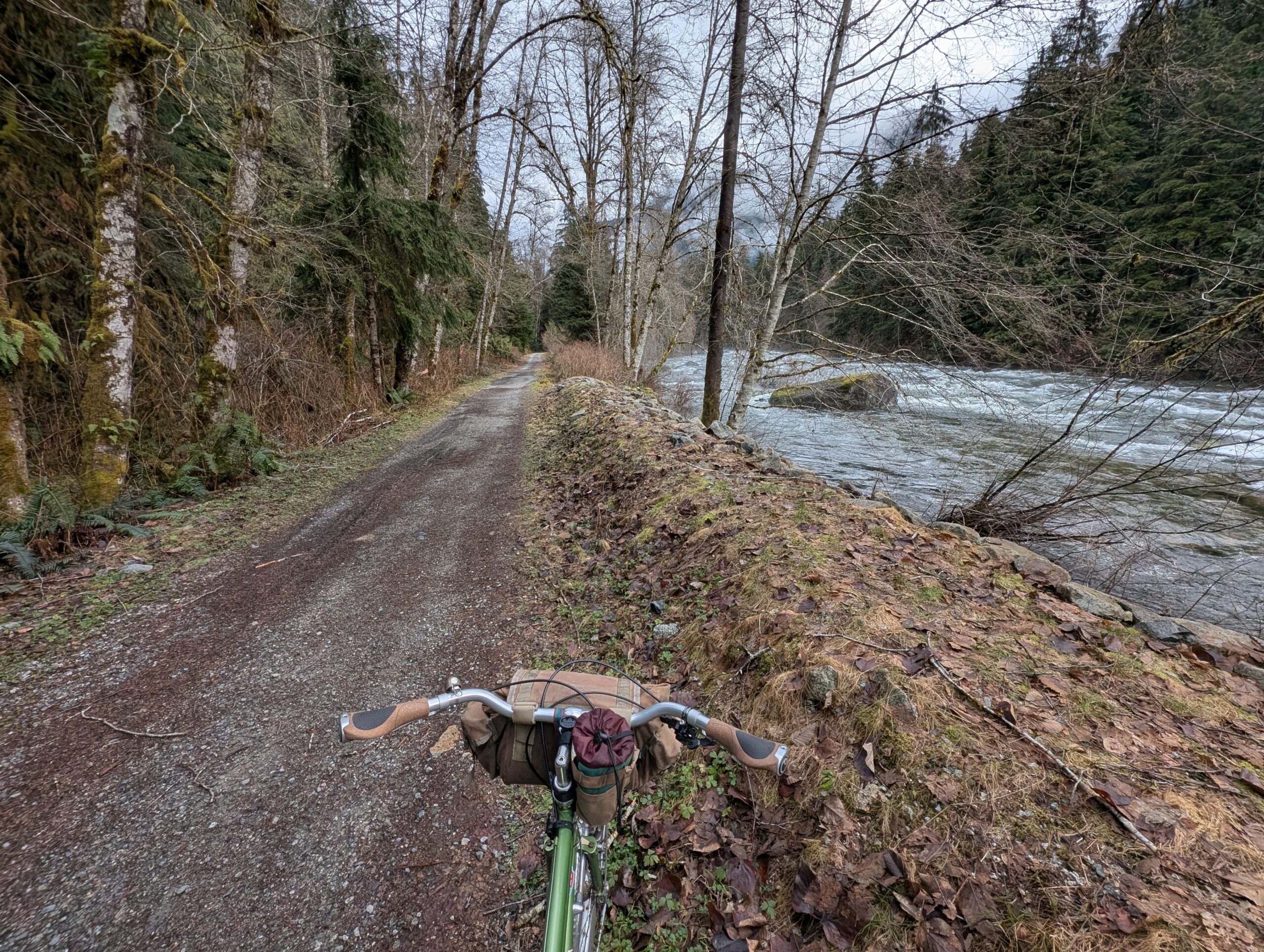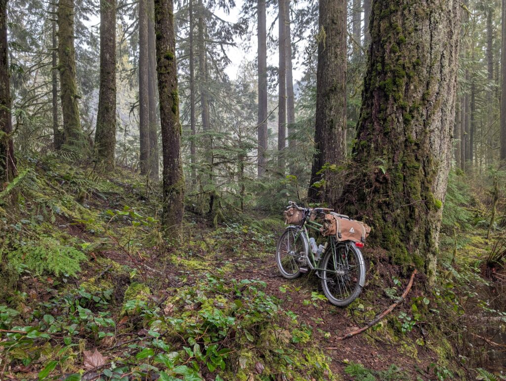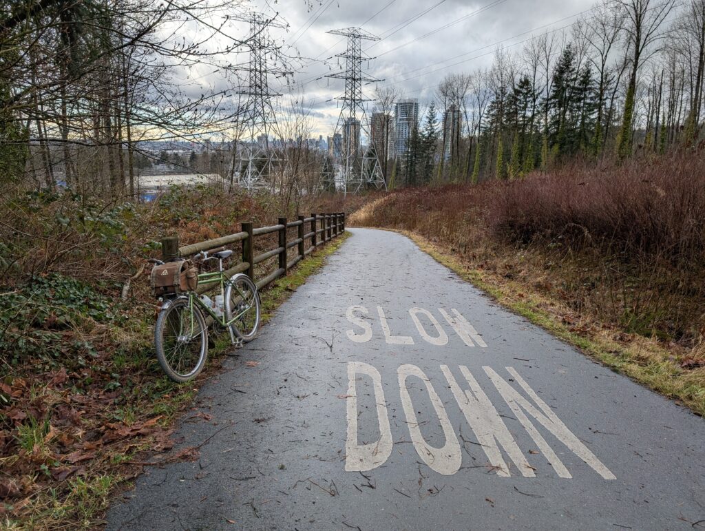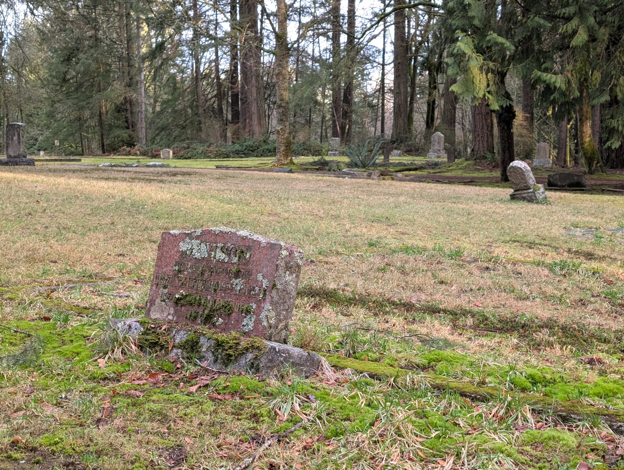 I took the Bombadil and headed over to the north shore. It didn’t take a lot of climbing before I reached some patchy snow. I made my way up Fisherman’s Trail along the Seymour river and didn’t have a real plan for how far I was going to go, I’d base it on the conditions and how I was feeling. It was stunningly beautiful, but the snow was also packing into my fenders. I rode up to the midvalley lookout, then up the Hydraulic creek connector and back on the paved parkway – which felt more like a XC skiing groomer today. As soon as I was back down the hill a bit the snow subsided, and I spent a little bit of time in the oldest corner of the cemetery along my route, reading the old headstones and reflecting on how they, too, are slowly being reclaimed by nature.
