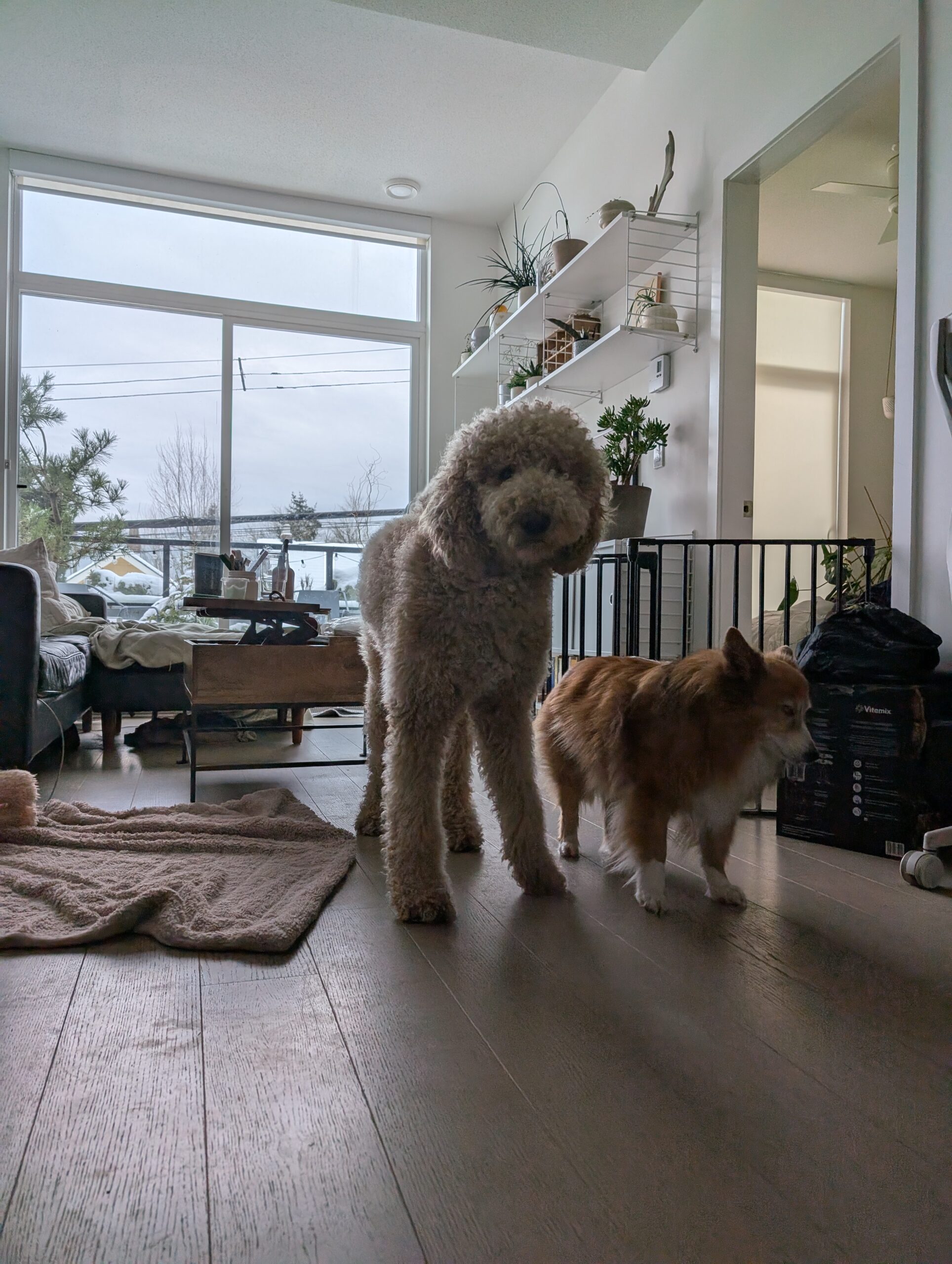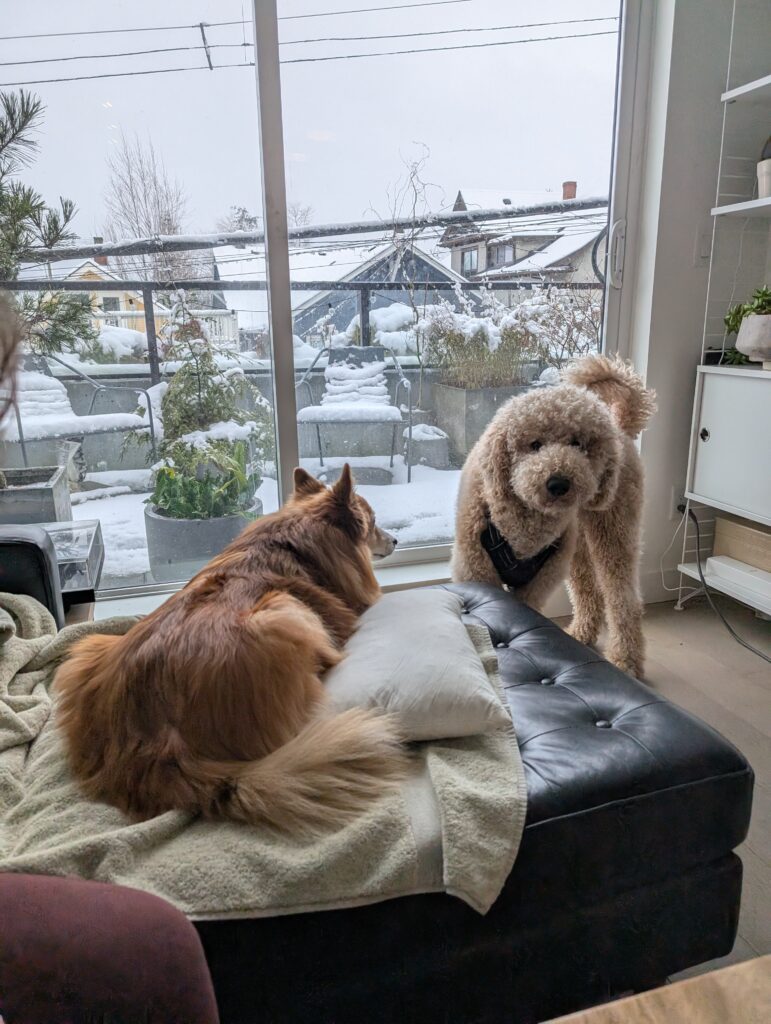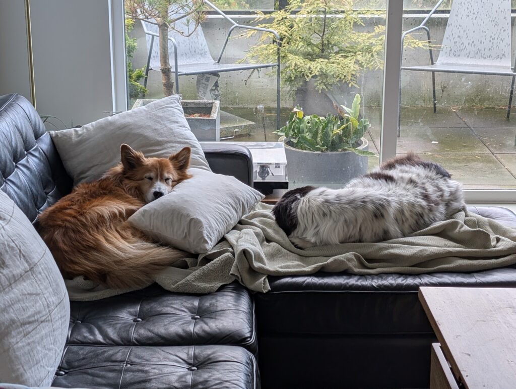 The next day Sunny and I went for a big walk over to the PNE grounds. She has proven to be snuggly and curious and pretty chill until she gets the zoomies. Her and Leia continue to become more comfortable around each other – Leia would get up and leave if she laid too close initially, but the trust has been building. Sunny is clearly very respectful of Leia.