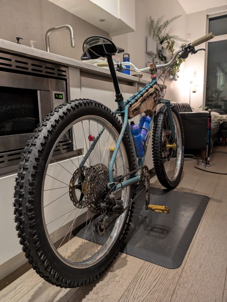 I also made some further upgrades to the Bike Friday – dynamo lighting was all wired up, I had a cool old titanium Jones bar from Tay and some matching blue Ergon grips. It was feeling pretty dialled in as an all-weather commuter and it rode great. I commuted on it twice over this week, including an extended route home one of the days, so this added up to over 60km of riding for the week alone.
